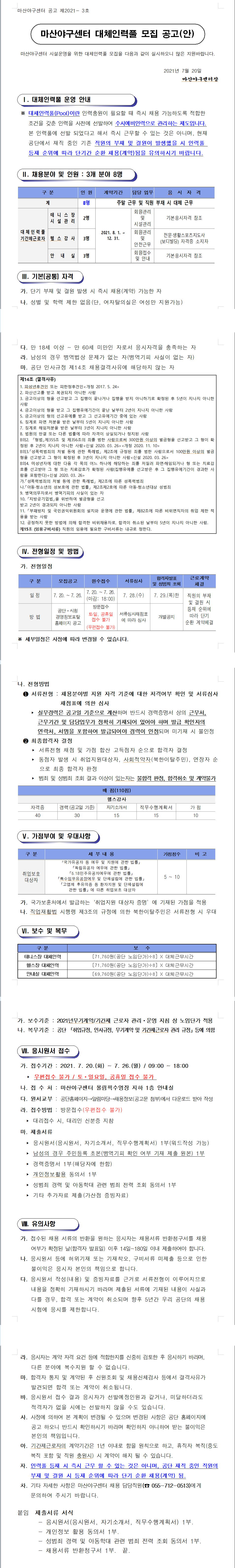 마산야구센터 대체인력풀 모집공고 상세보기