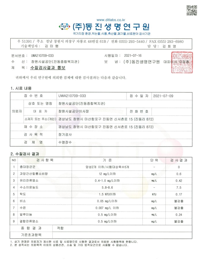 7월 수영장 수질검사 결과 안내