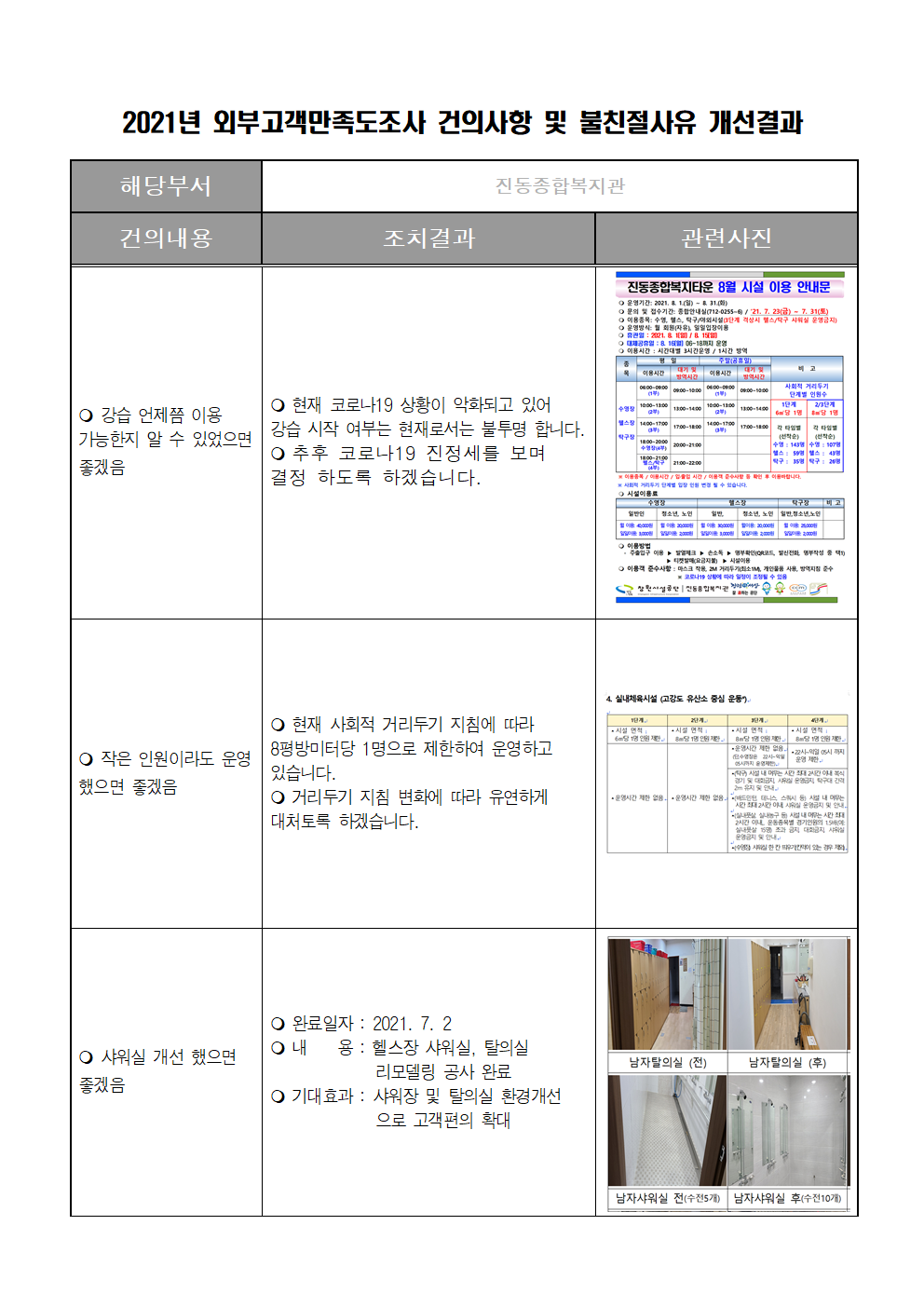 2021년 외부고객 건의사항 개선결과