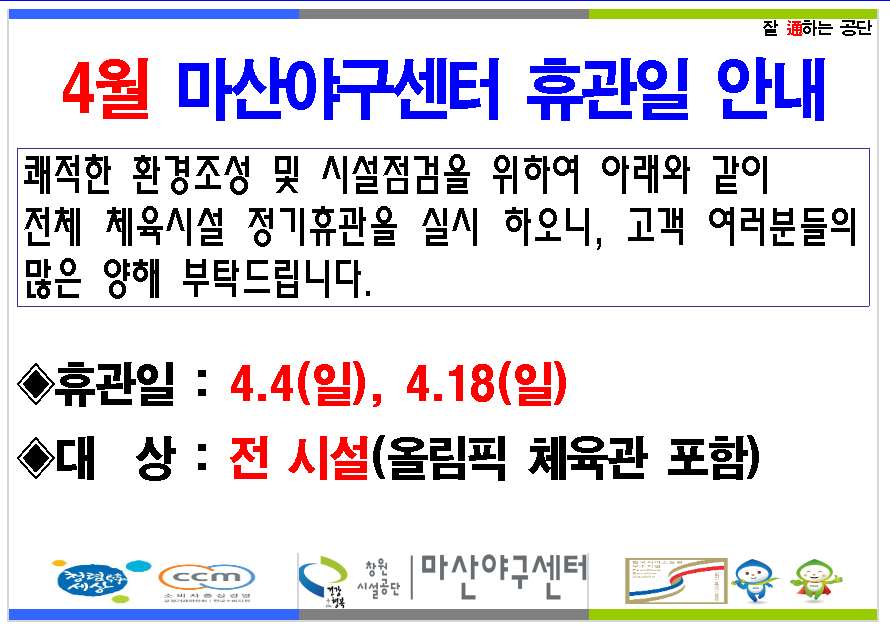 마산야구센터 체육관(배드민턴) 4월 운영 안내