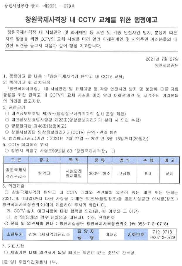 창원국제사격장 내 CCTV 교체를 위한 행정예고