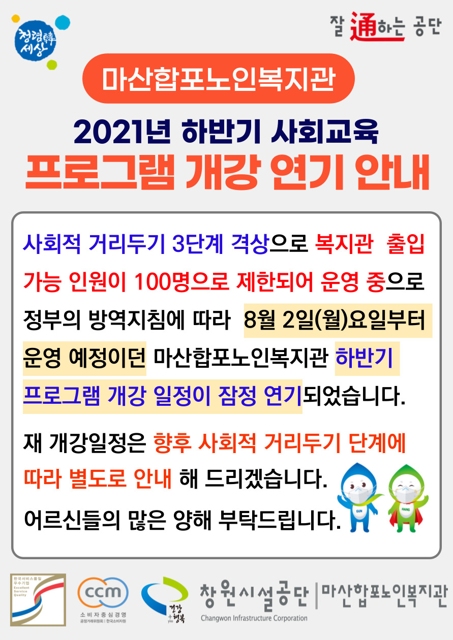 마산합포노인복지관에서 알려드립니다.