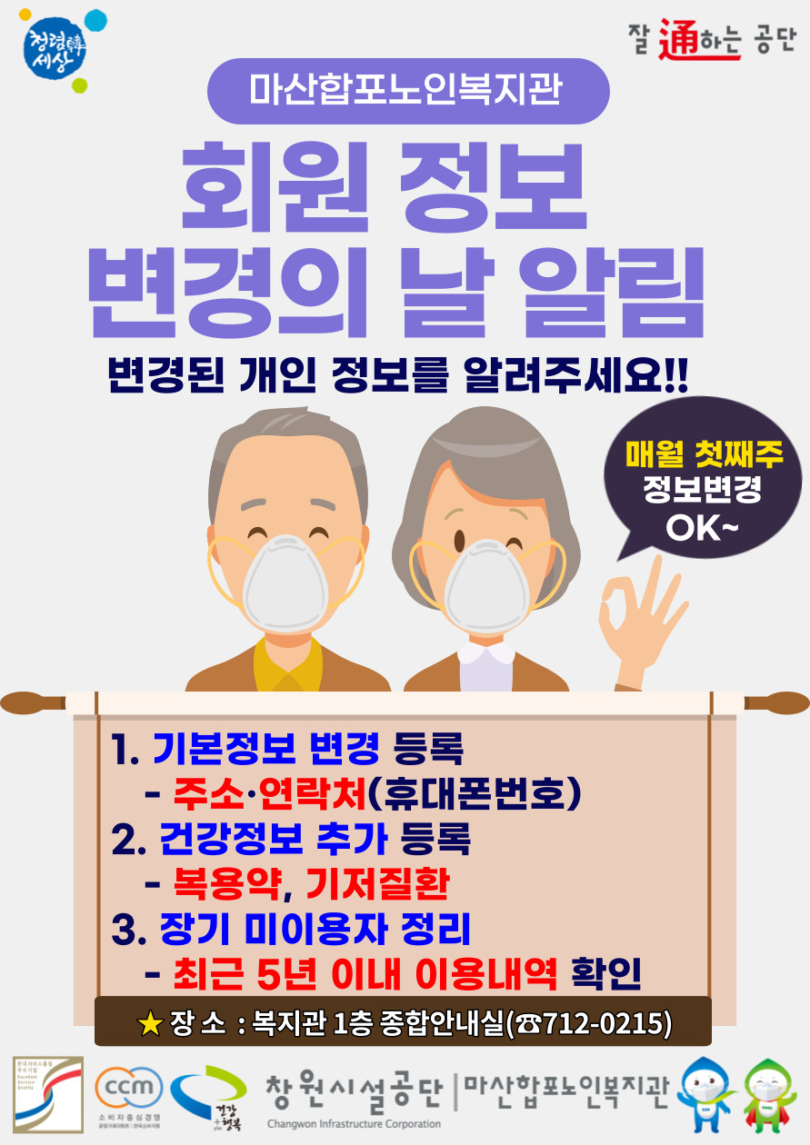 마산합포노인복지관 개인정보 변경의 날 운영 안내입니다.