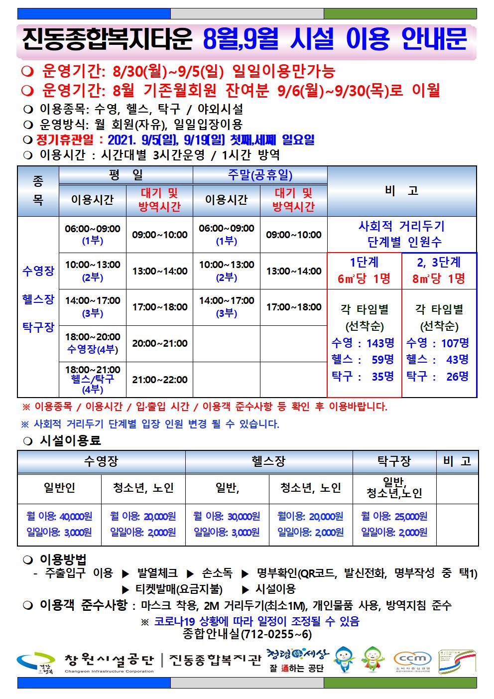 진해국민체육센터 재개장 운영안내