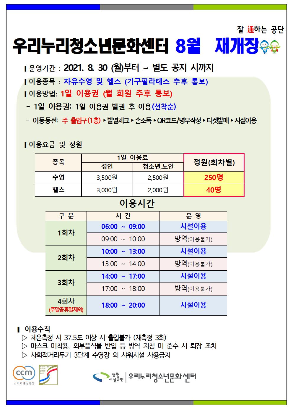우리누리청소년문화센터 재개장 안내