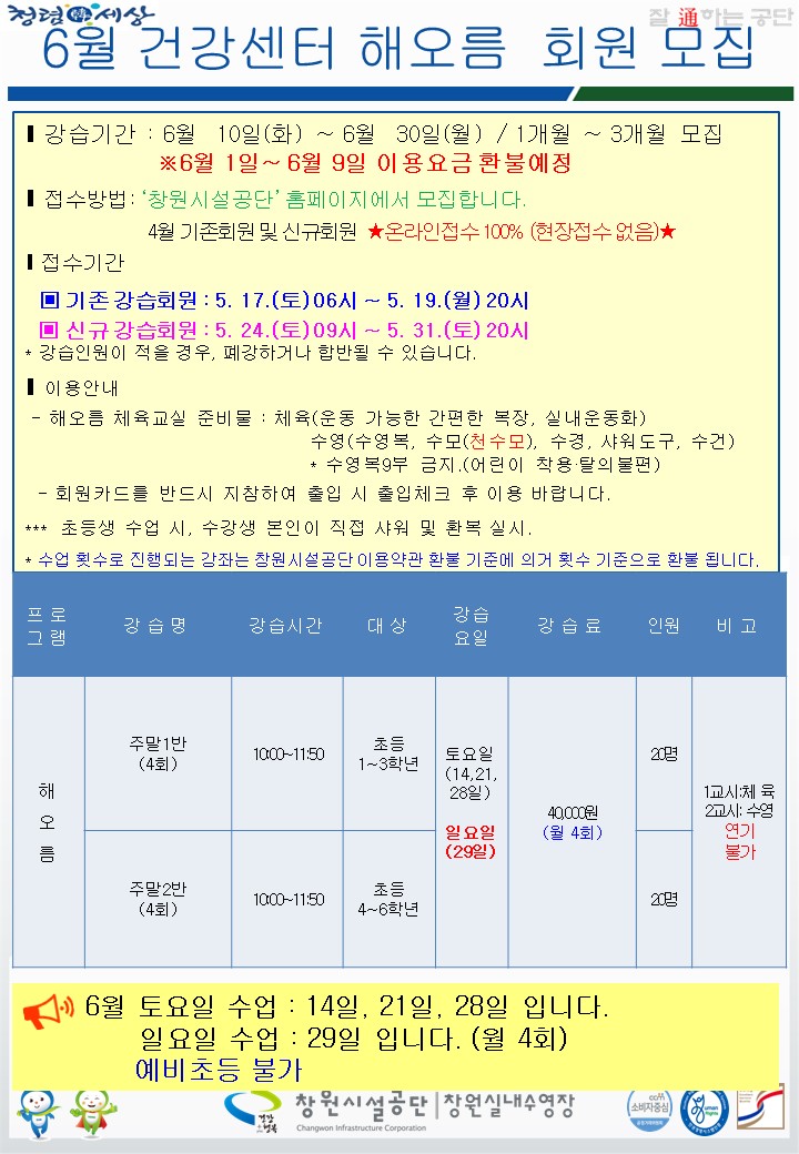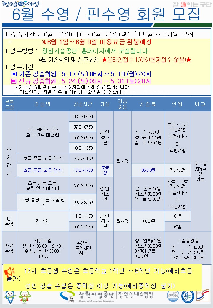 전국소년체전 수영대회에 따른 신규접수기간이 변경되었습니다.