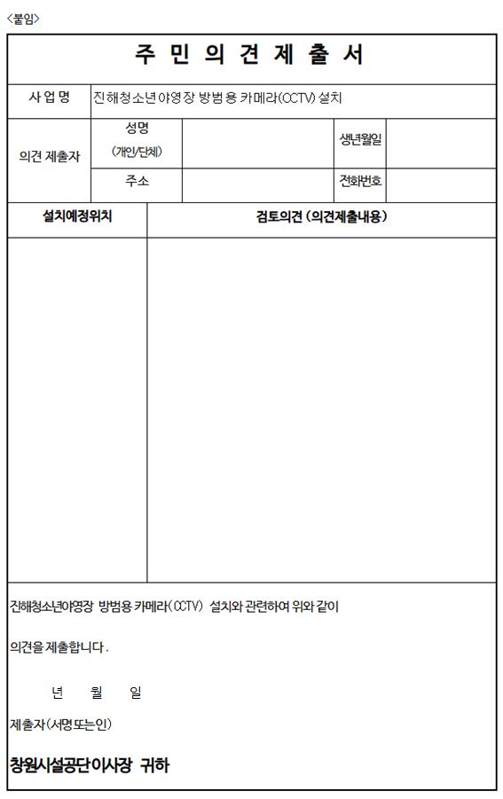 진해청소년야영장 CCTV추가 설치를 위한 행정예고