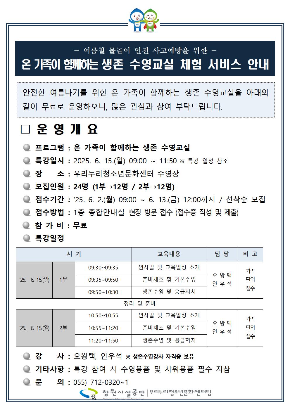 온가족이 함께하는 생존 수영교실 안내 상세보기