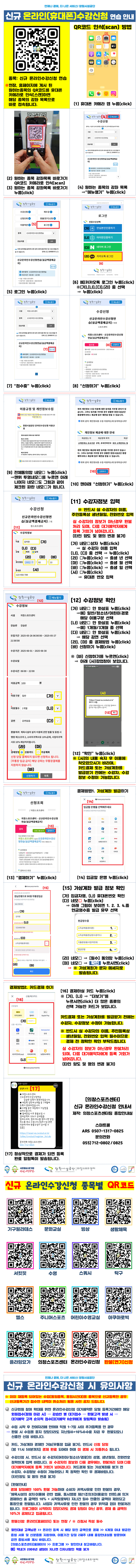 신규 온라인(휴대폰)수강신청 안내부스로 문의 바랍니다.