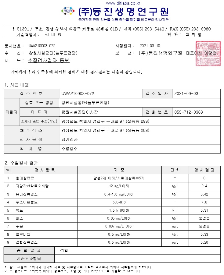 9월 수영장 수질검사 결과 알림 상세보기