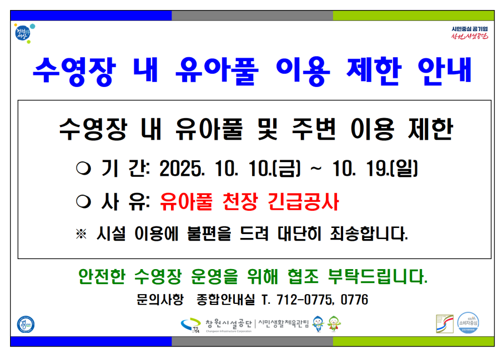 수영장 내 유아풀 이용 제한 안내 상세보기