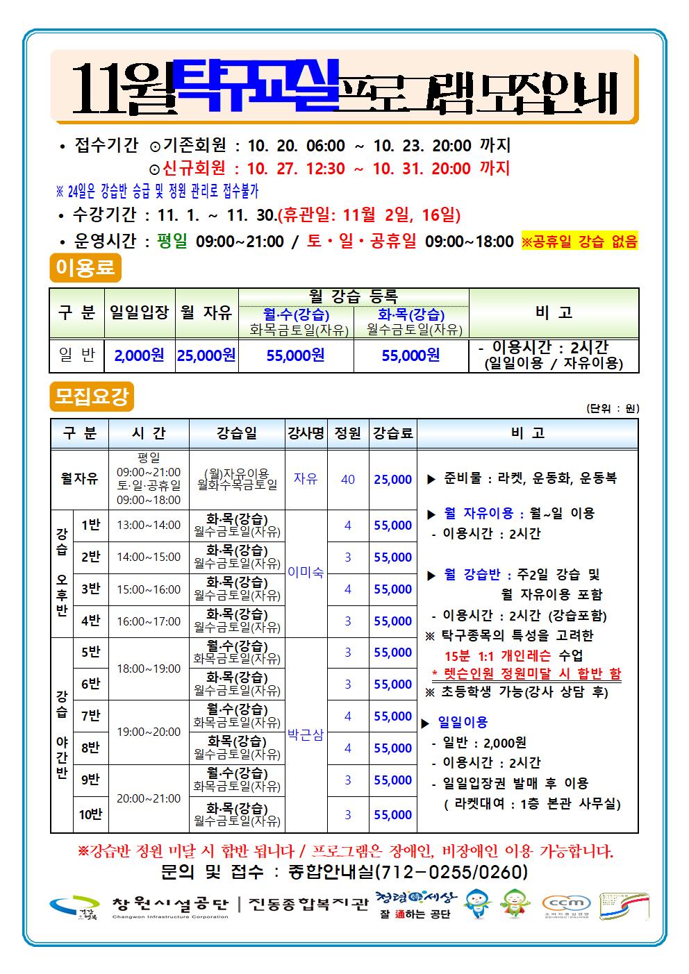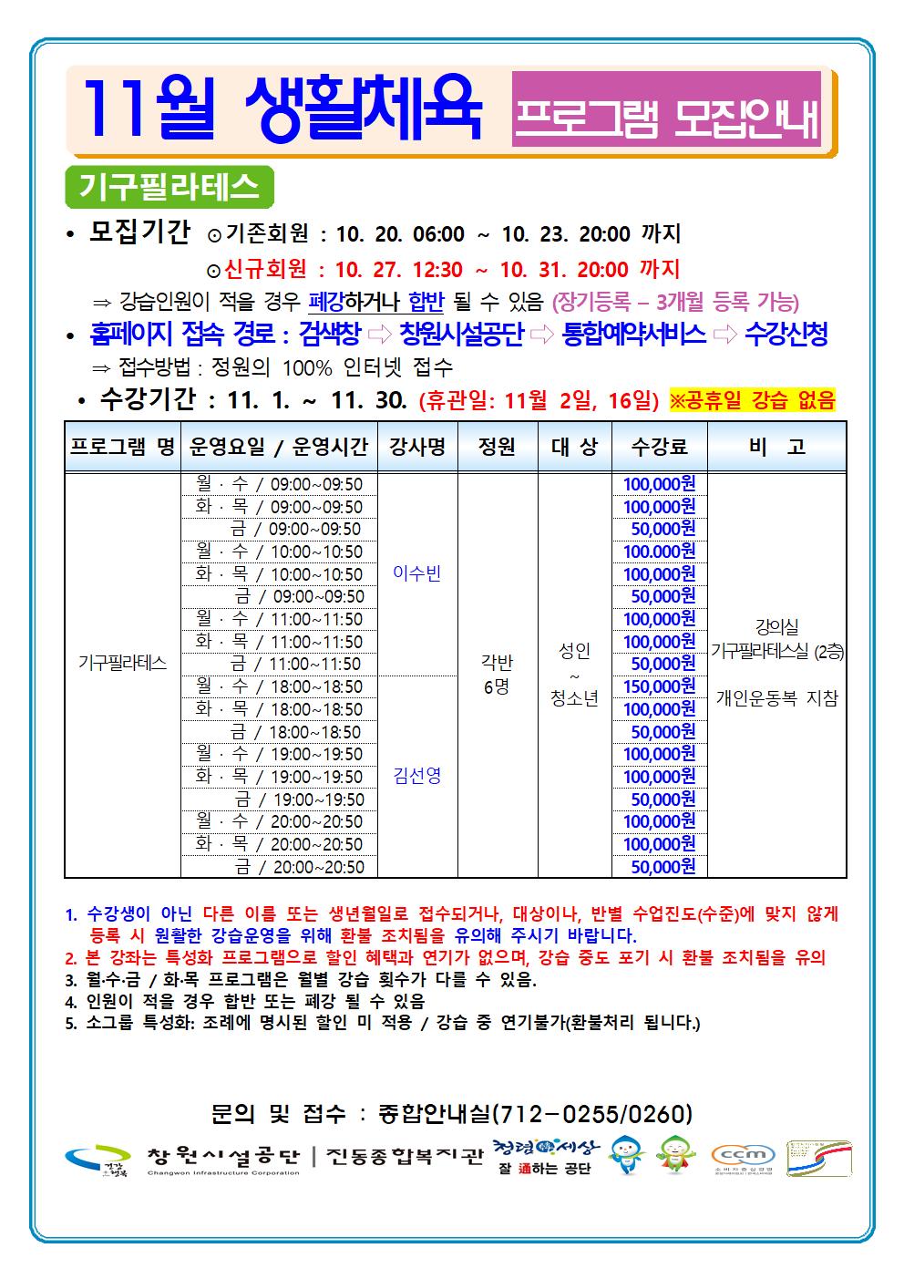 11월 프로그램 운영안내