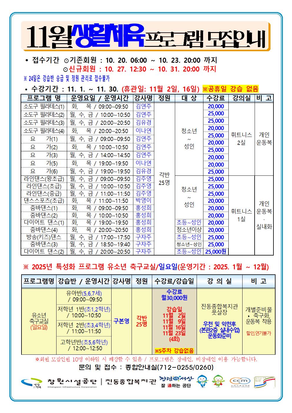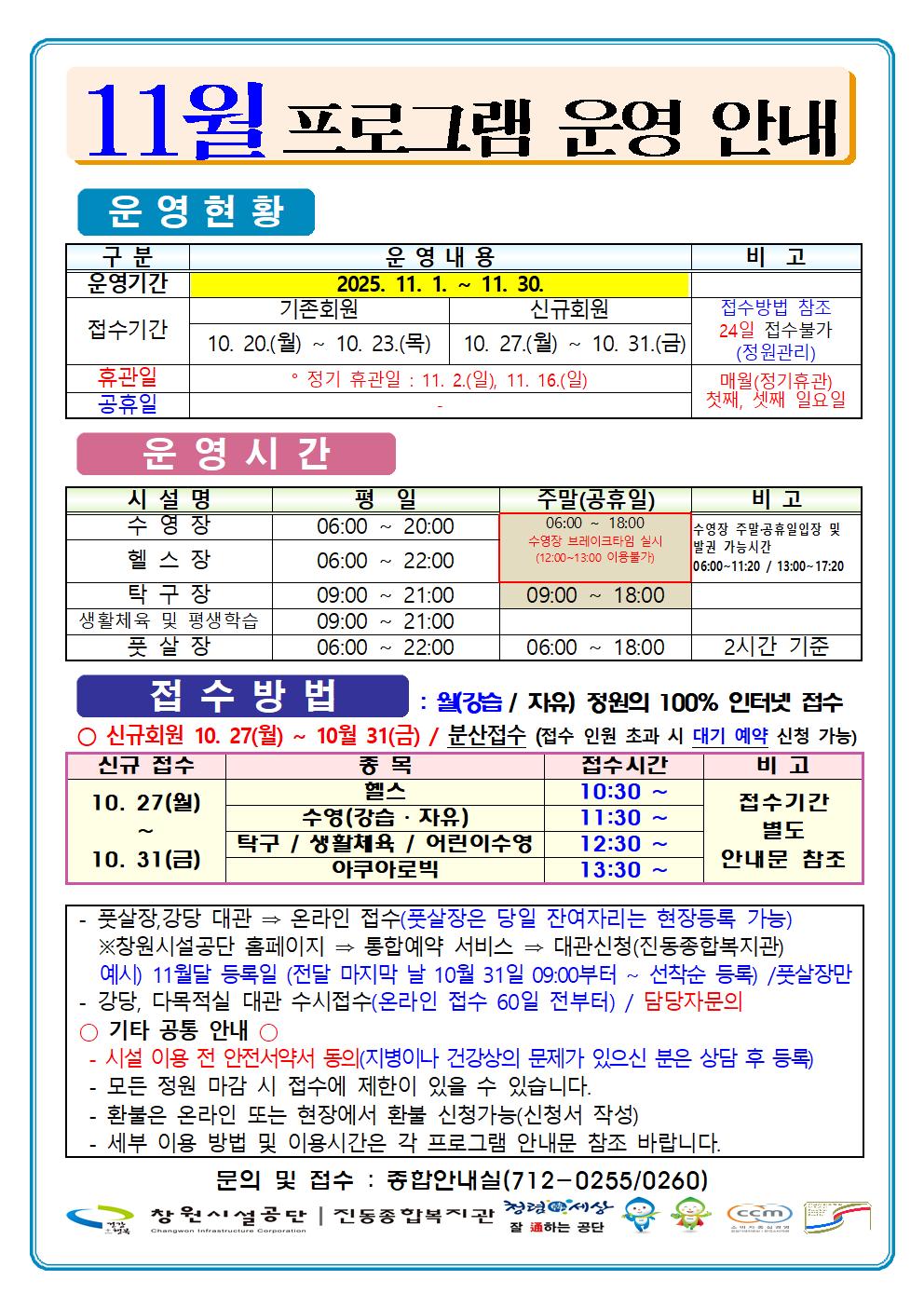 11월 프로그램 운영 안내