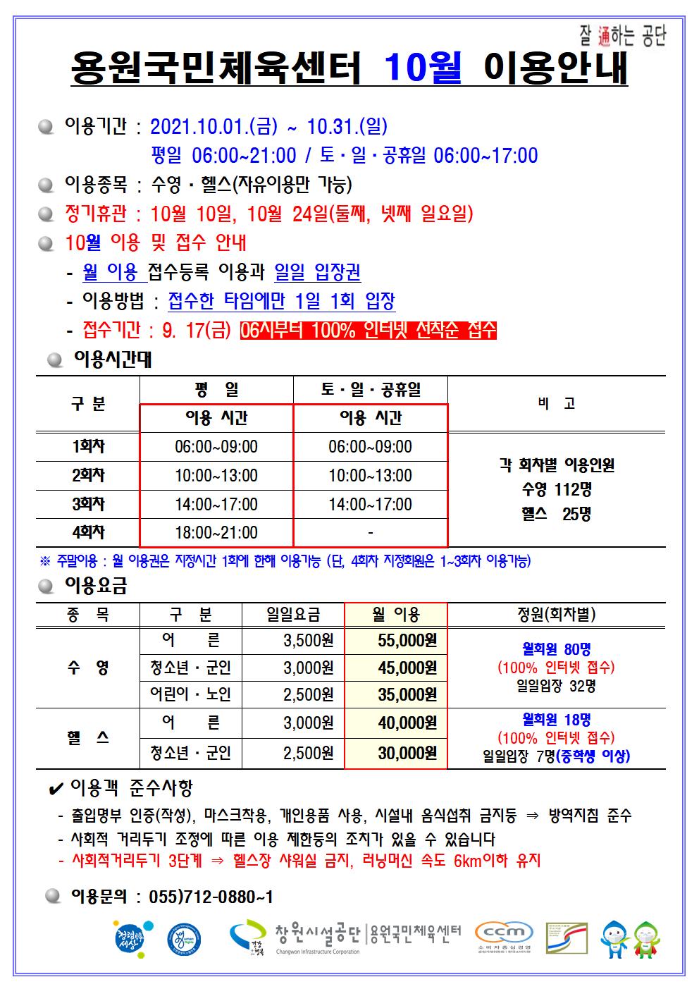 [용원국민체육센터]10월 이용안내