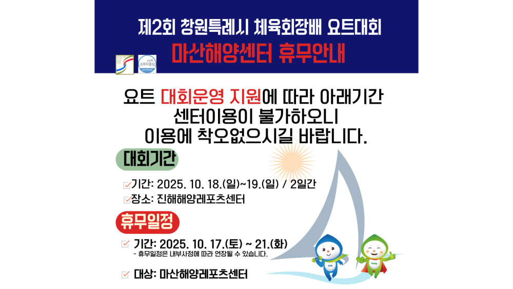 마산해양레포츠센터 임시휴관 알림 상세보기