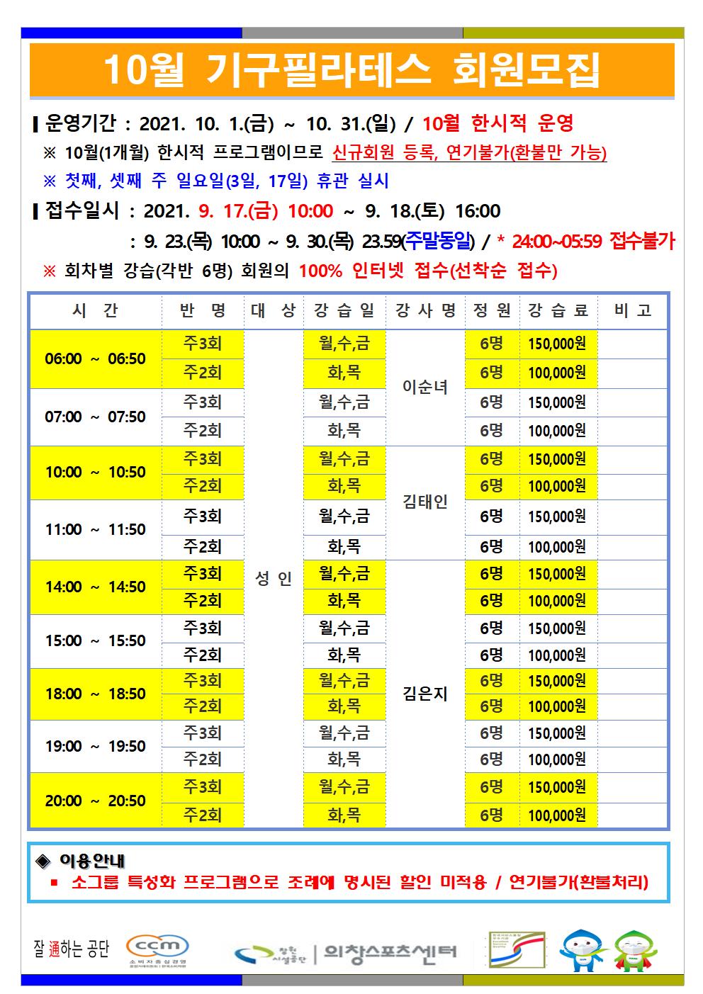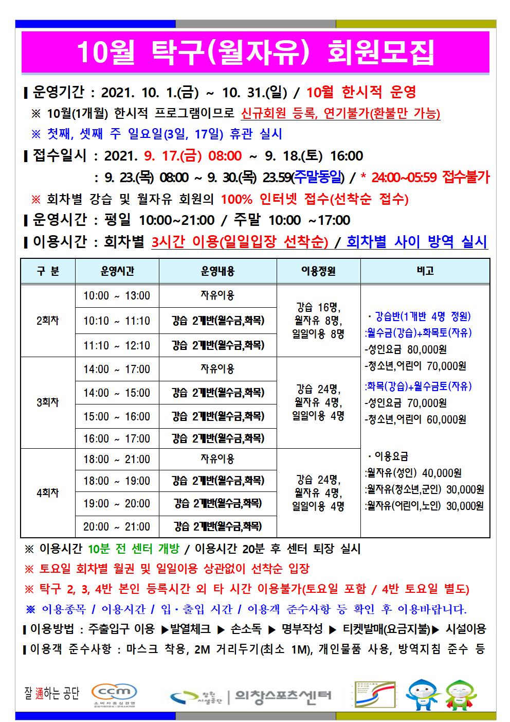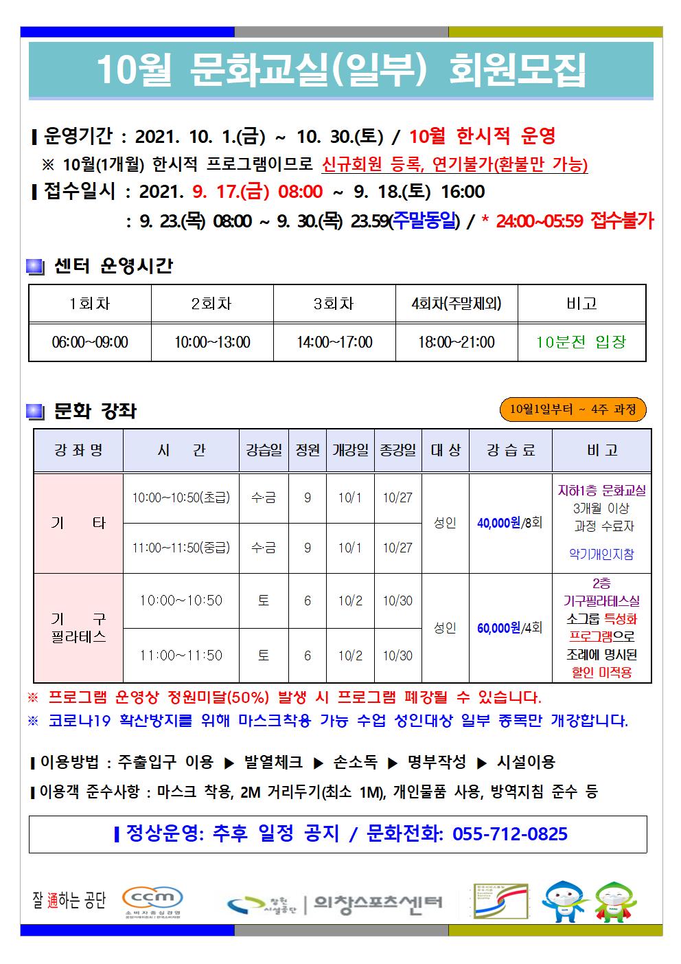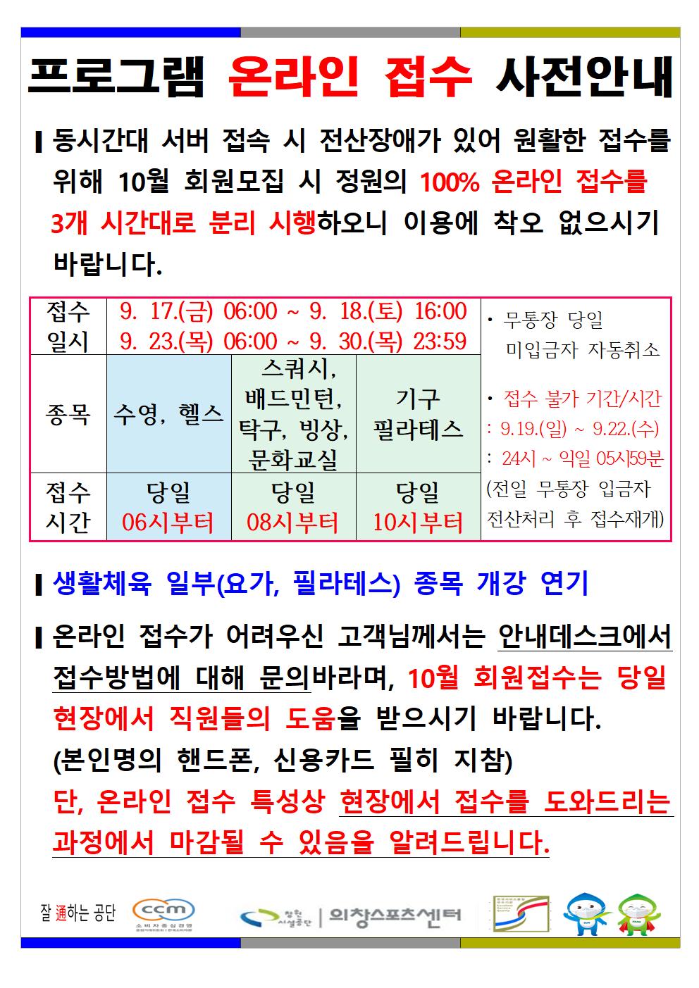 10월 한시적 프로그램 운영 안내