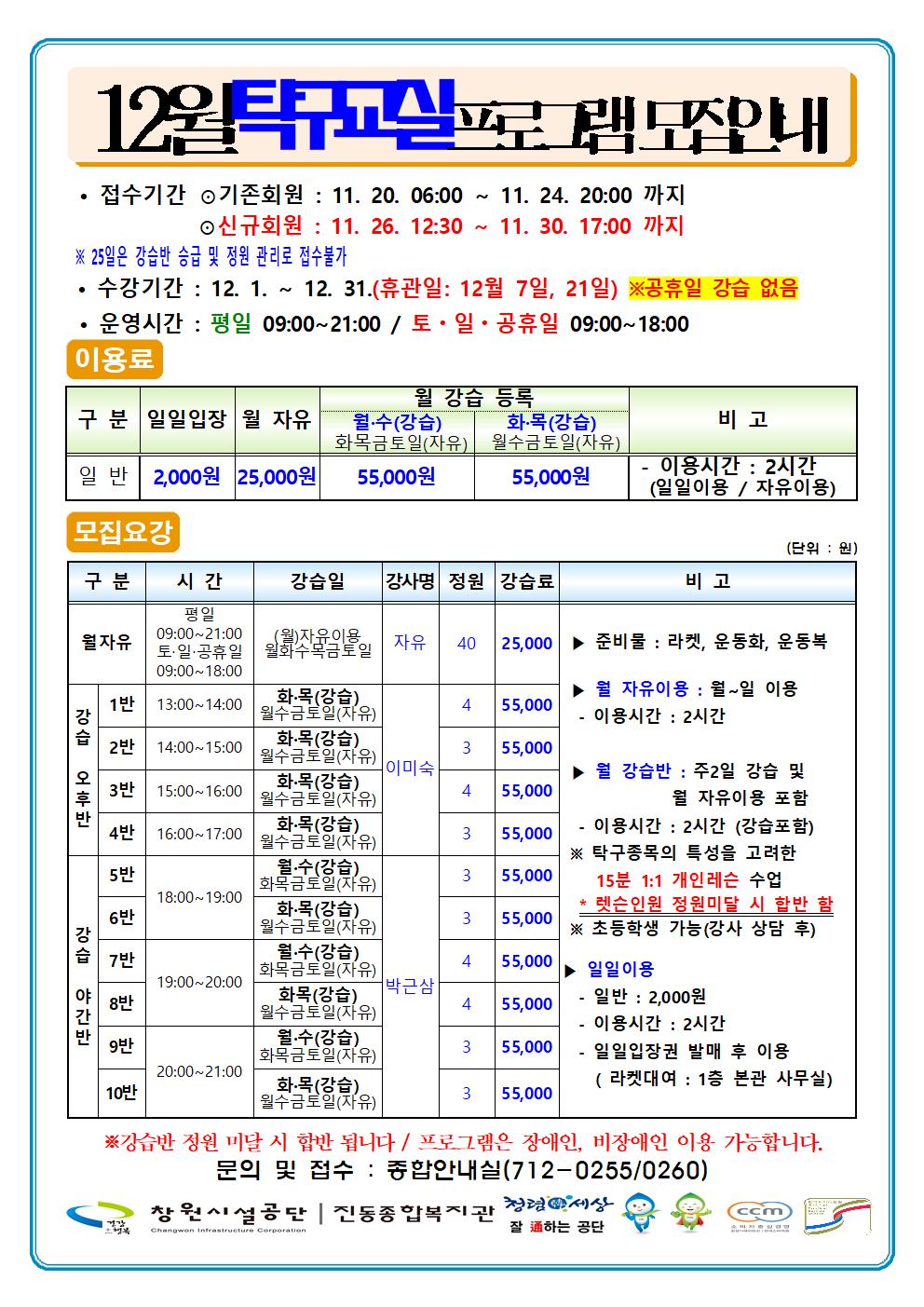 12월 프로그램 운영안내