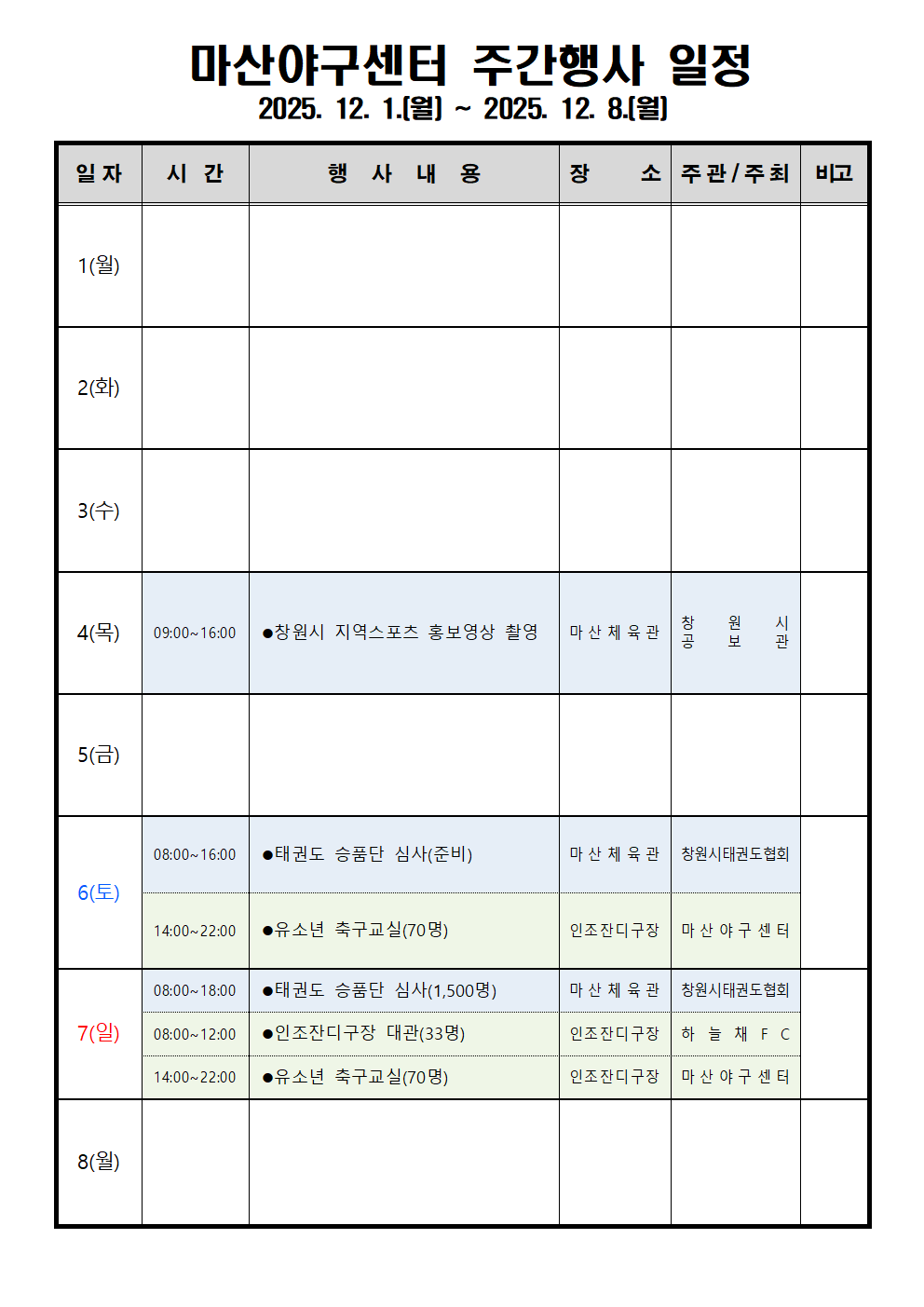 마산야구센터 주간행사일정2025. 12. 1. ~ 2025. 12. 8..hwp