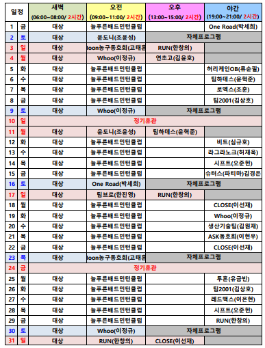 10월 체육관 live 대관 추첨 결과 게시 상세보기