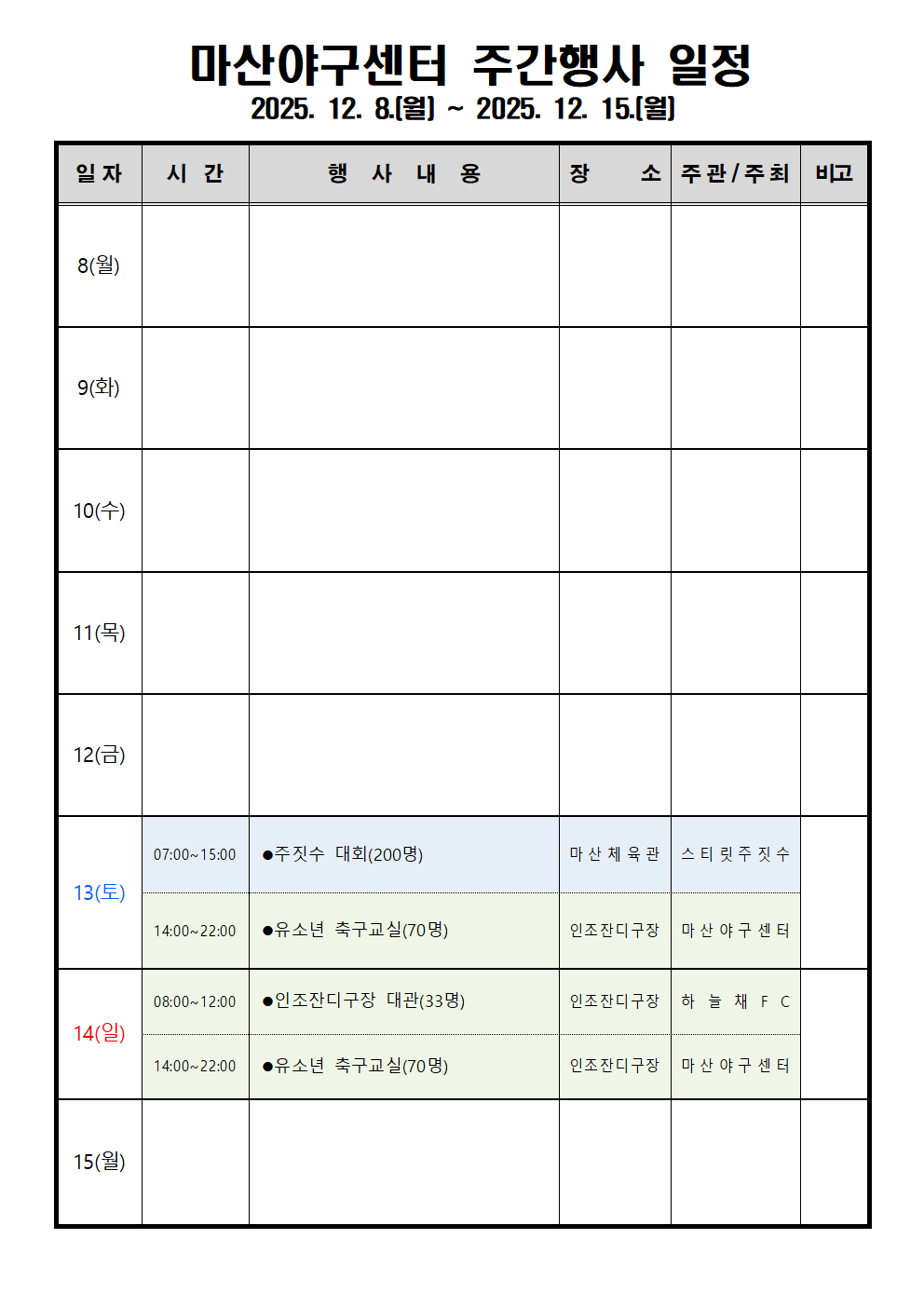 마산야구센터 주간행사일정2025. 12. 8. ~ 2025. 12. 15..hwp