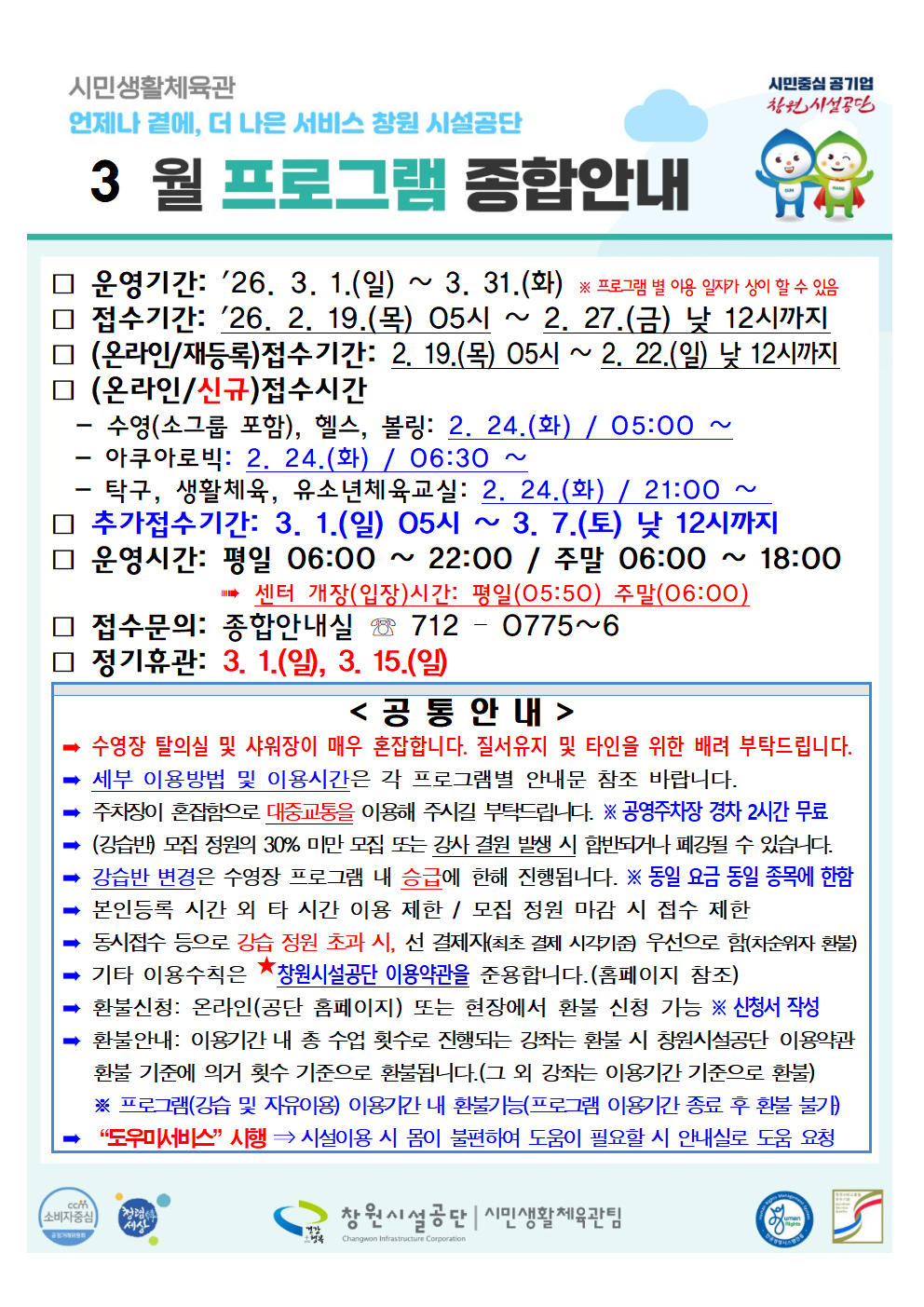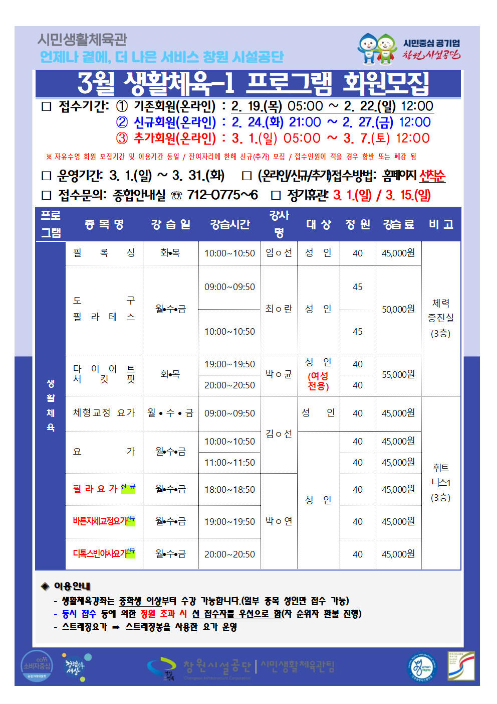 3월 프로그램 운영 안내