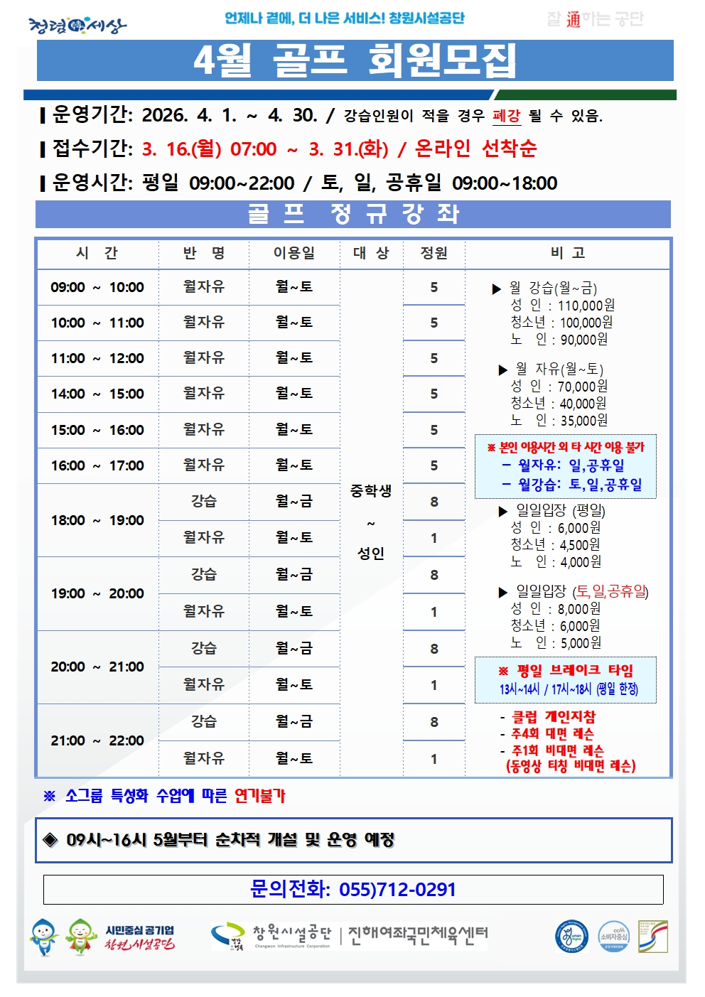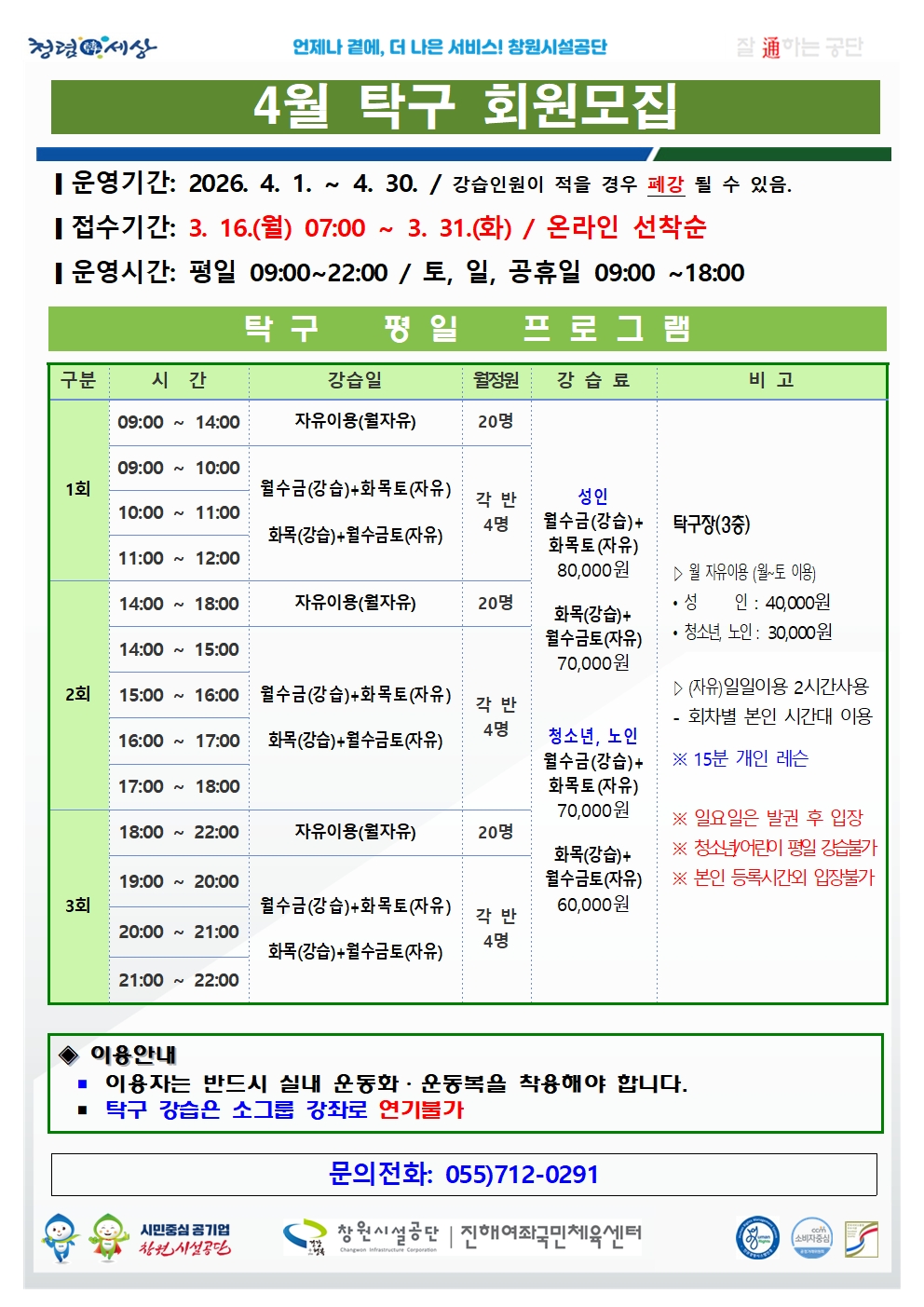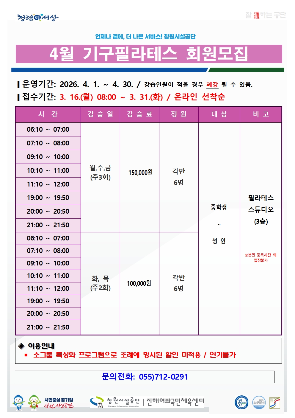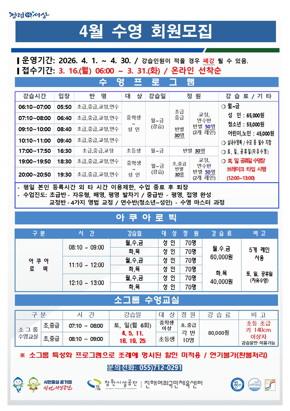 4월 여좌국민체육센터 프로그램 회원 모집