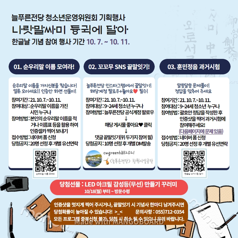 2번. SNS 끝말잇기 참가 계정 검색--> 인스타그램 "늘푸른전당" 검색(계정아이디: cwgreenhall2021)