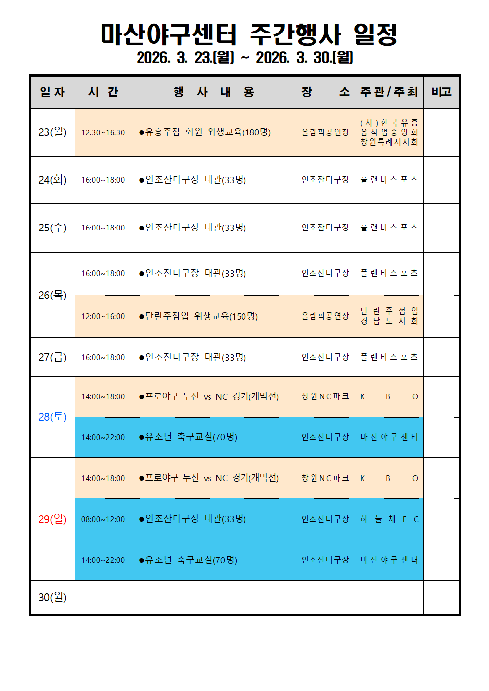 마산야구센터 주간행사일정2026. 3. 23. ~ 2026. 3. 30..hwp