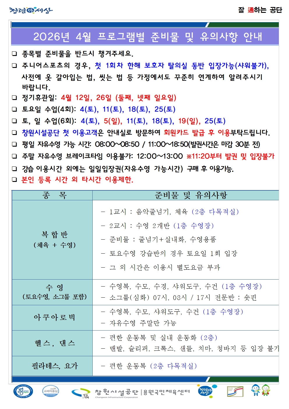 2026년 4월 프로그램 준비물 안내