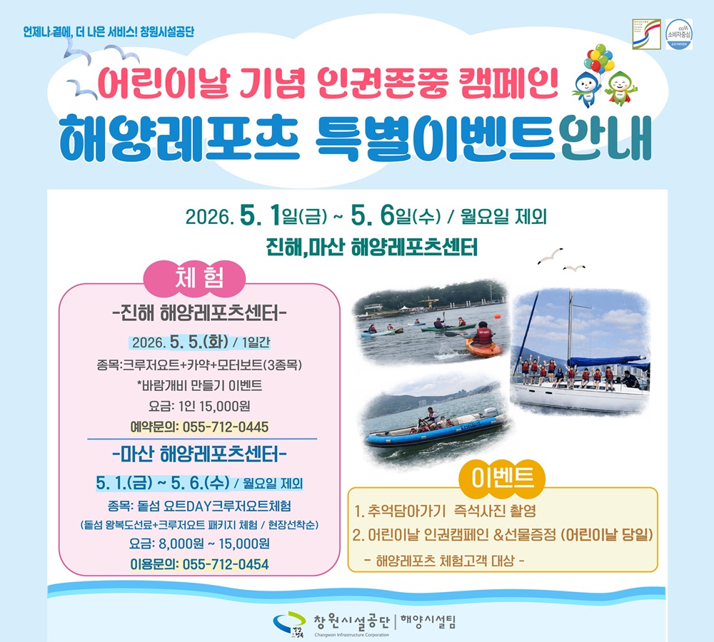 어린이날 기념 어린이 인권존중 캠페인 & 해양레포츠 특별이벤트 안내