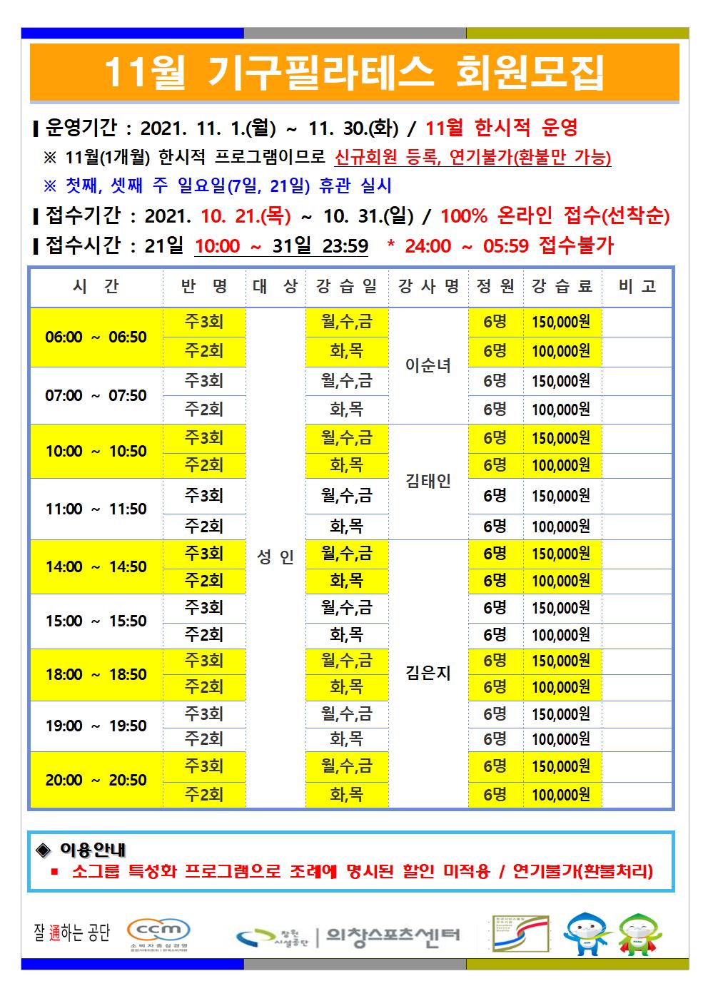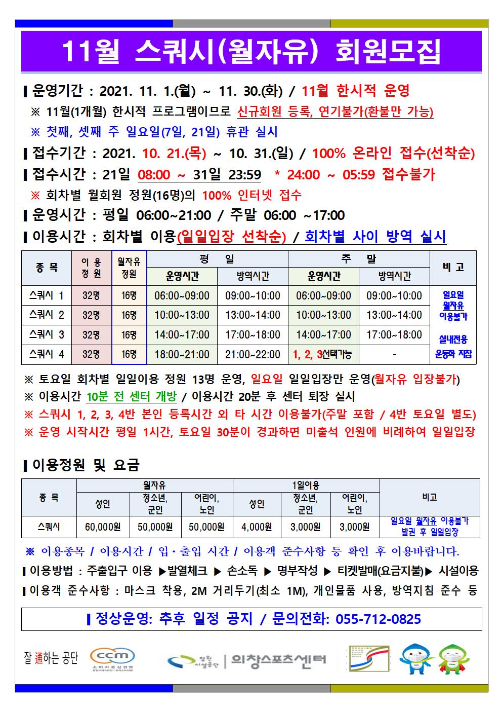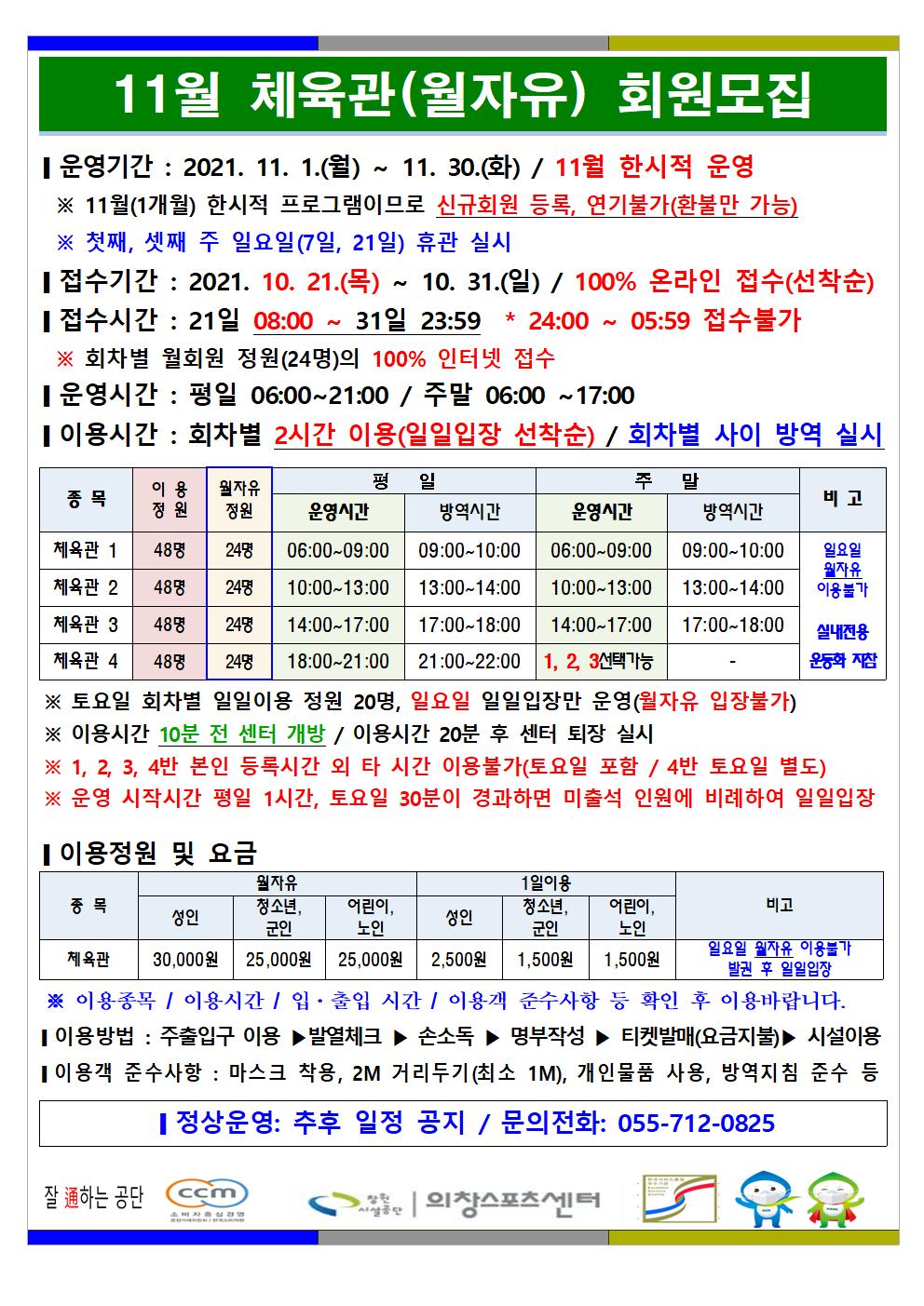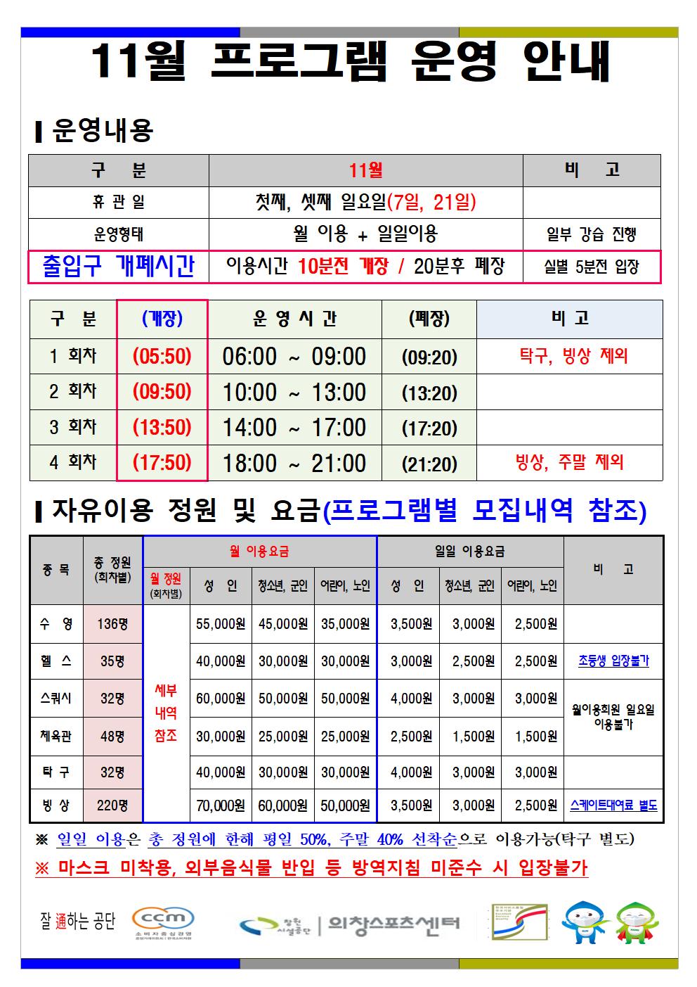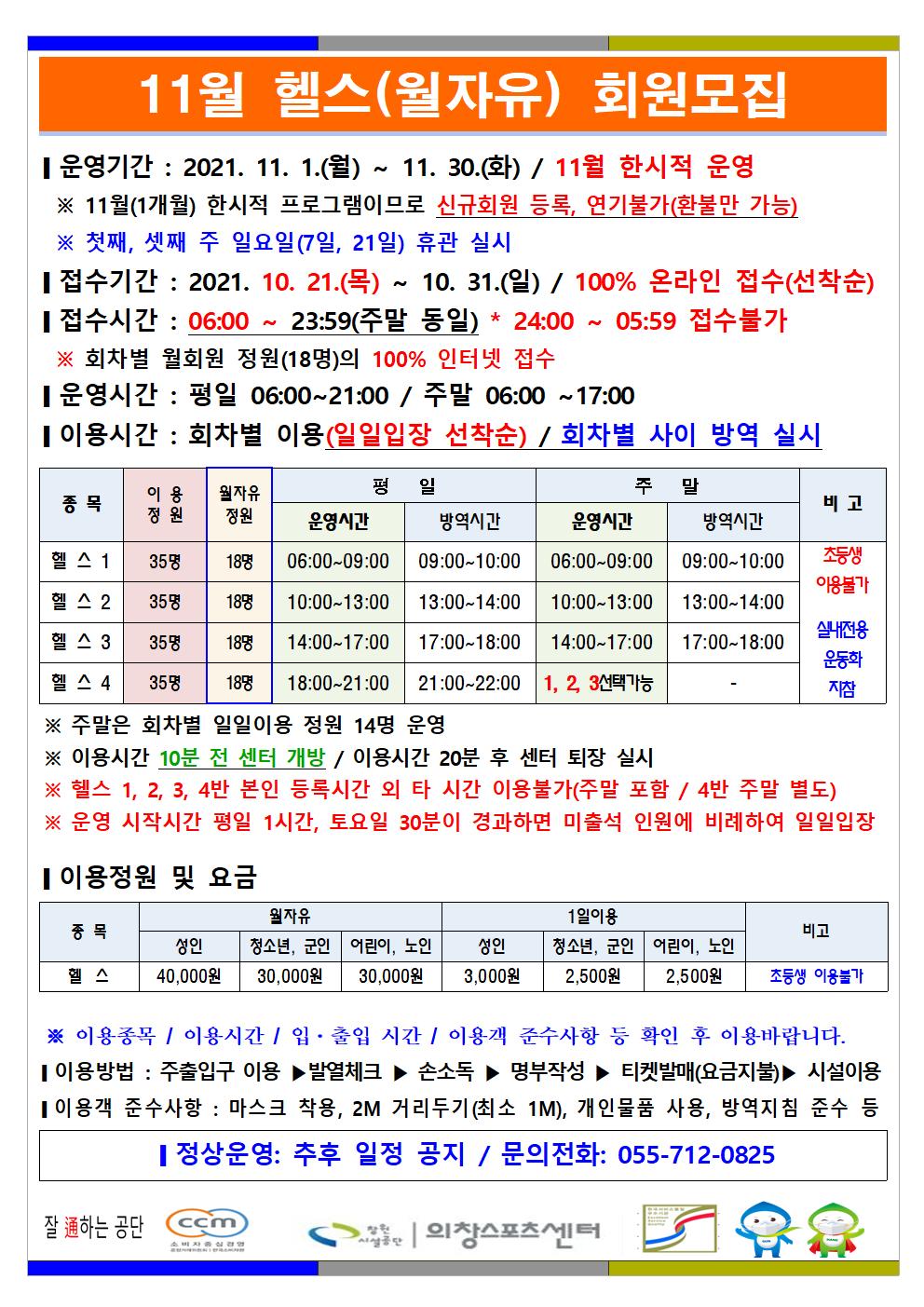 11월 한시적 운영(헬스장) 안내