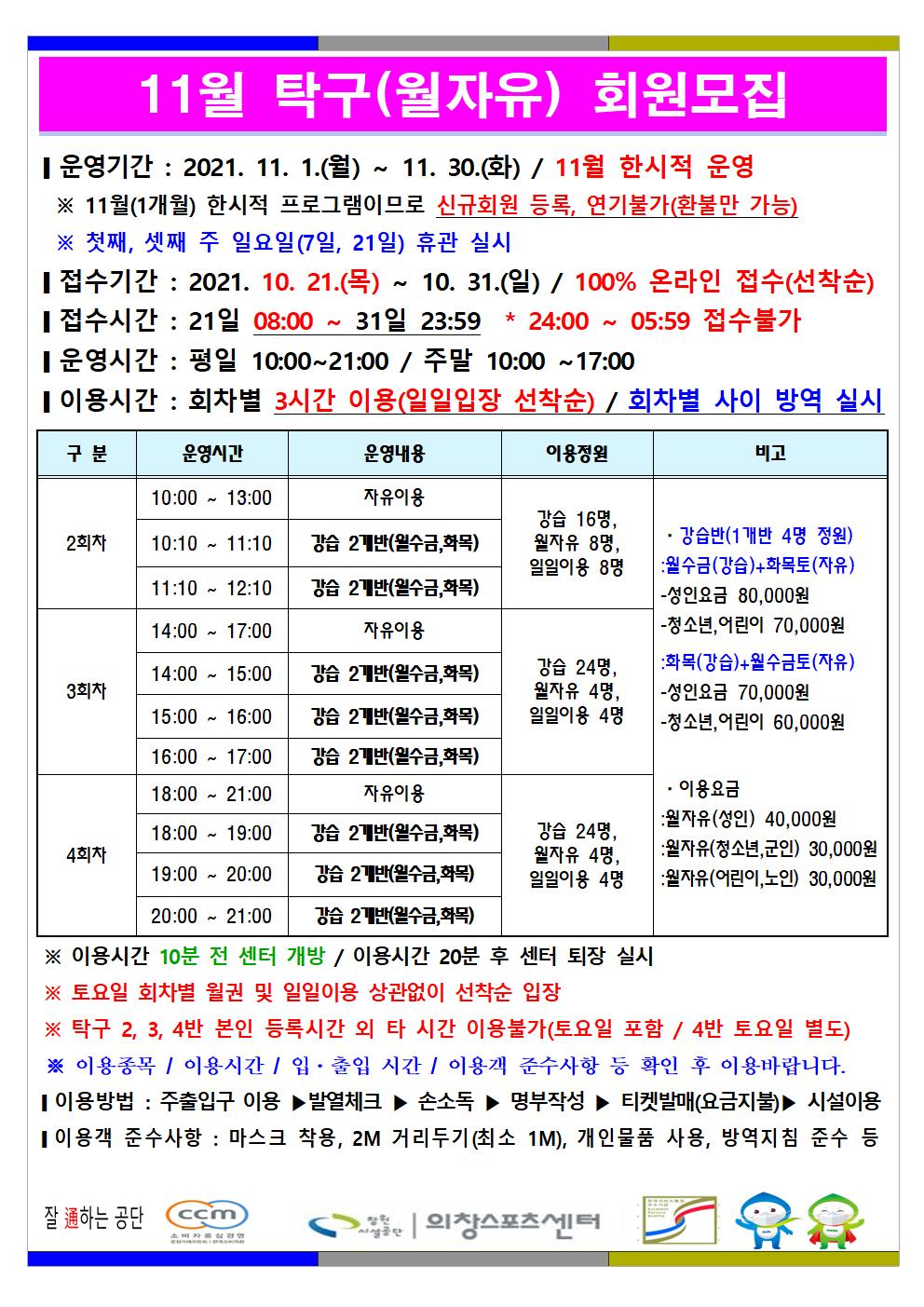 11월 프로그램 운영 안내 및 사회적 거리두기 3단계 연장 조치사항 안내
