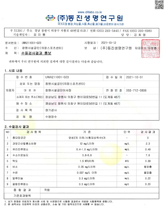10월 수영장 수질검사 결과 안내 상세보기