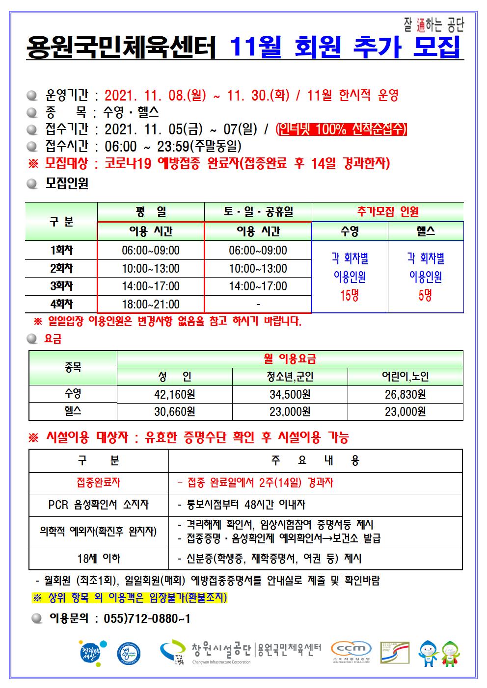 11월 프로그램 이용인원 조정 및 추가 월회원모집 안내