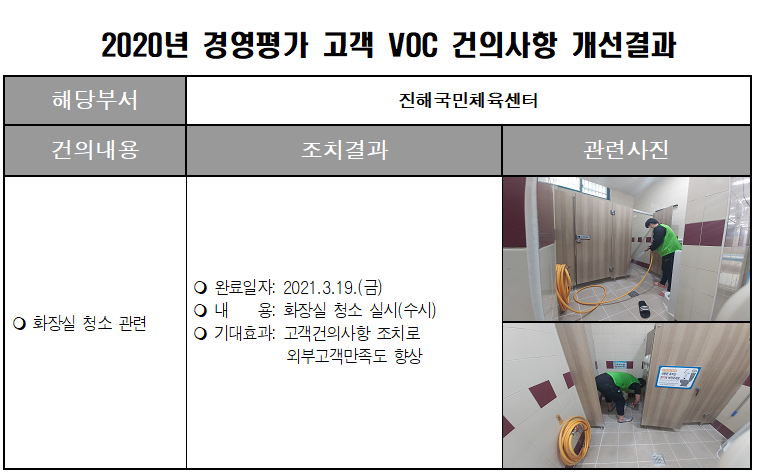 2020년 경영평가 고객만족도 VOC건의사항 개선결과
