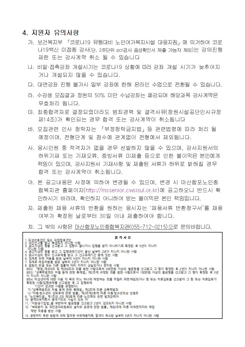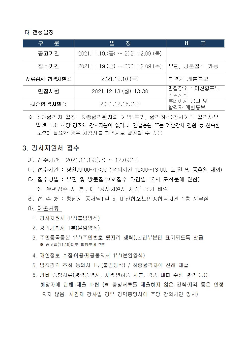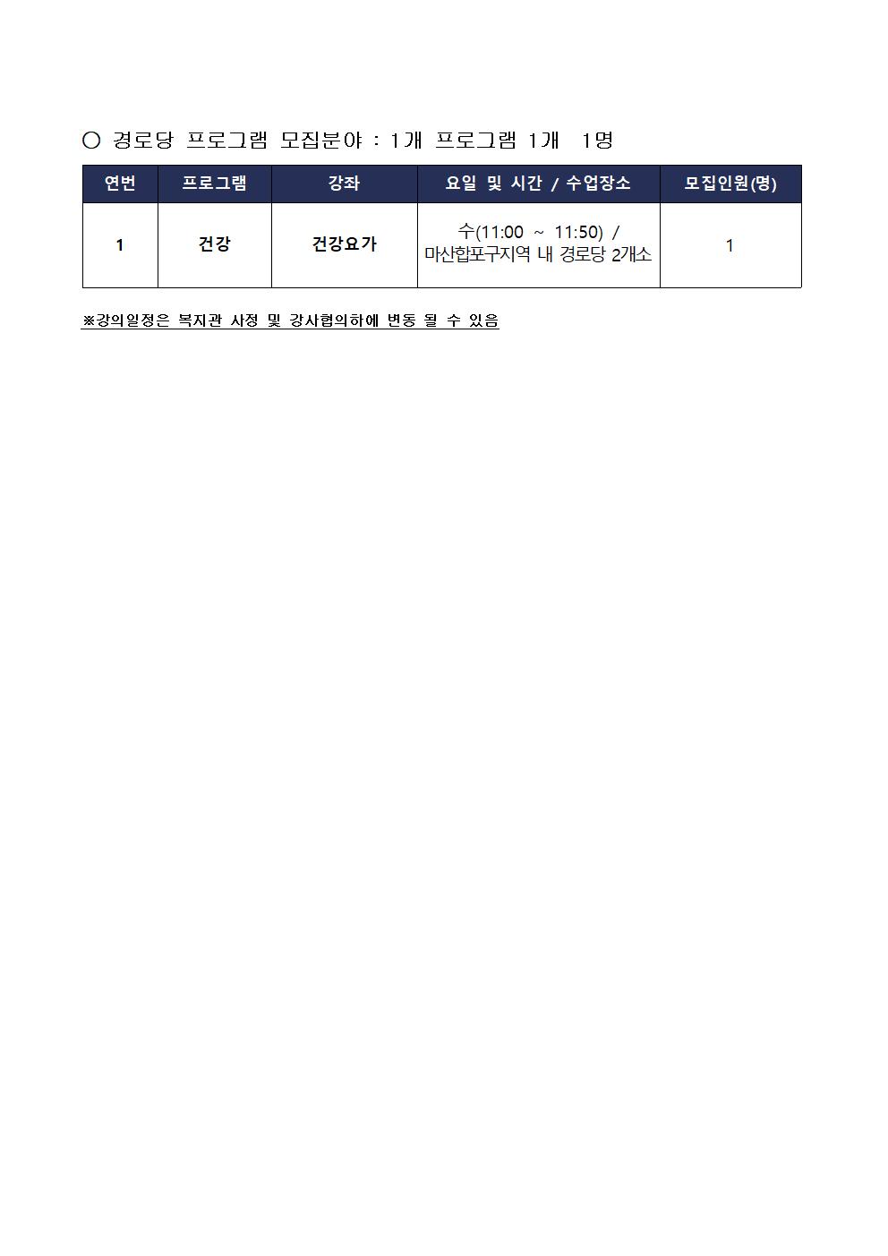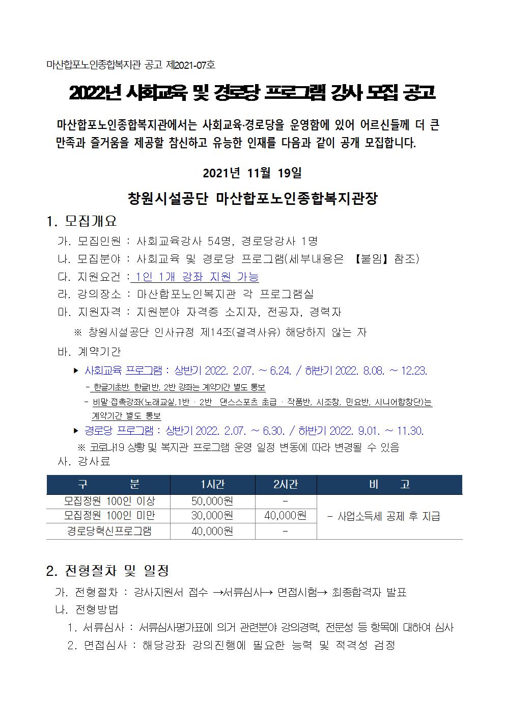 [마산합포노인복지관]2022년 사회교육 및 경로당 프로그램 강사 모집 공고 상세보기