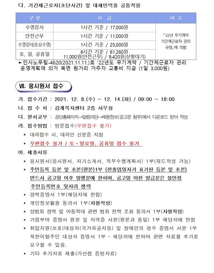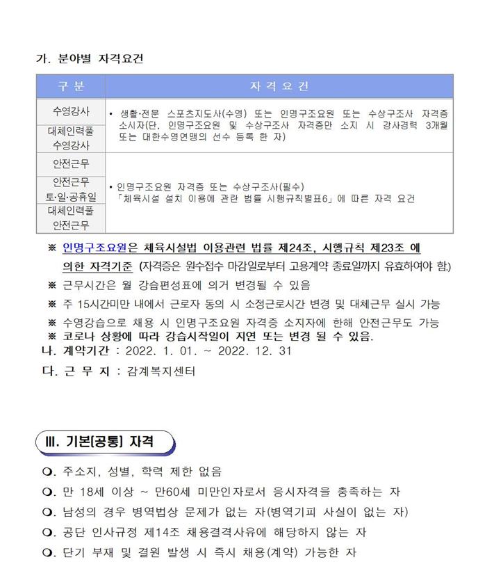 2022년 수영장 기간제(초단시간) 및 대체인력풀 근로자 모집 공고 상세보기