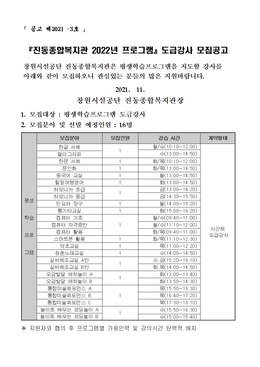 2022년 평생학습 프로그램 도급강사 채용공고