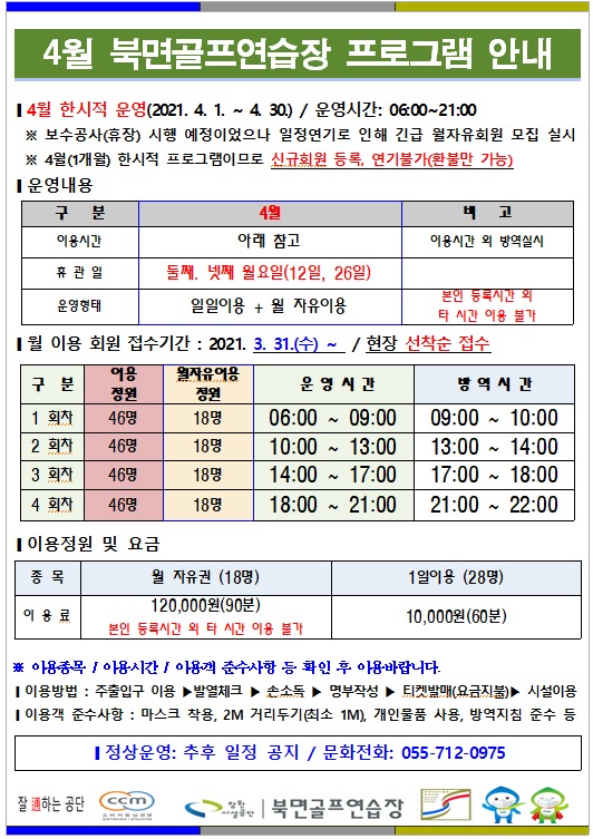 북면골프연습장 4월 프로그램 운영 안내
