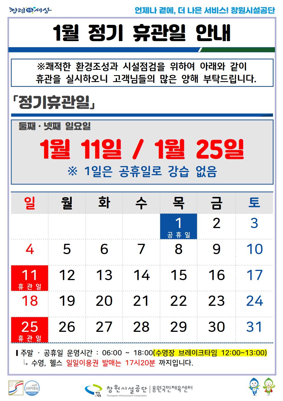 1월 정기휴관일 및 공휴일 안내