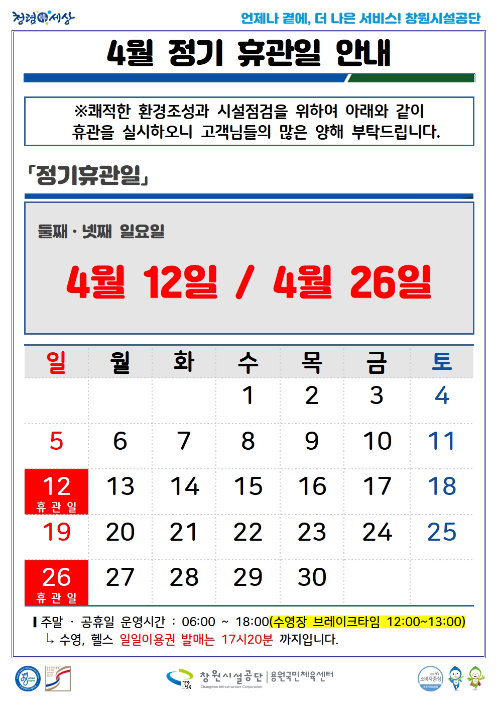 4월 정기휴관일 안내