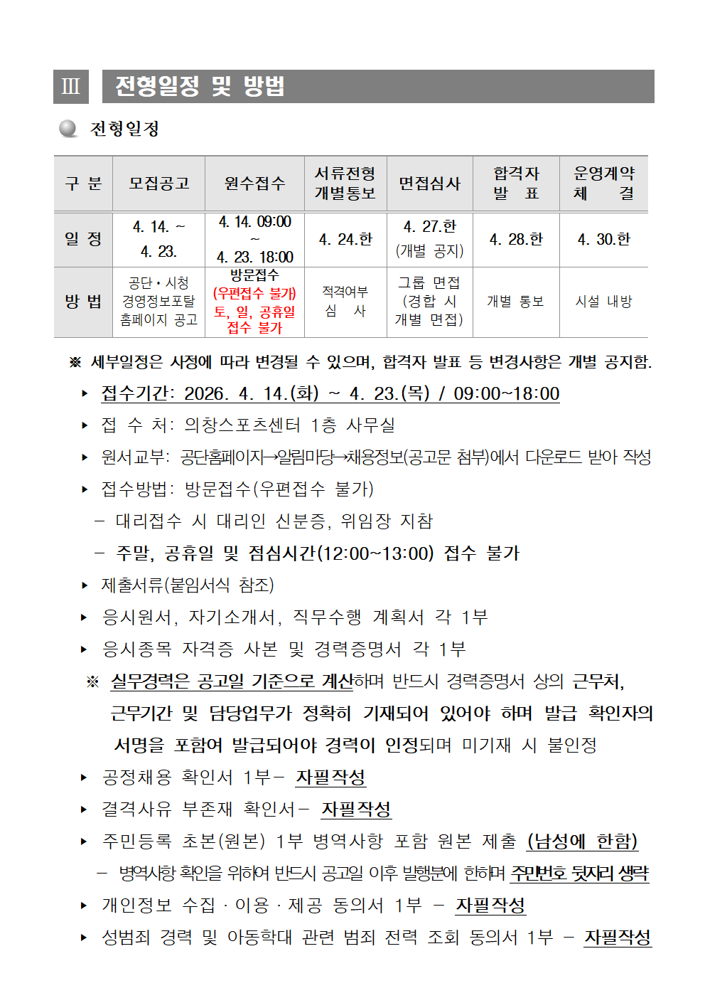 (의창스포츠센터) 신규 프로그램 도급강사 모집 공고