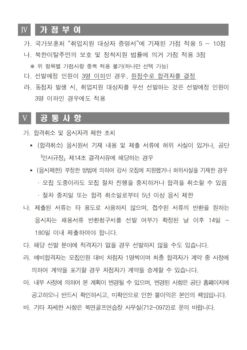 [북면골프연습장] 골프 프로그램 도급 강사 모집 공고 상세보기