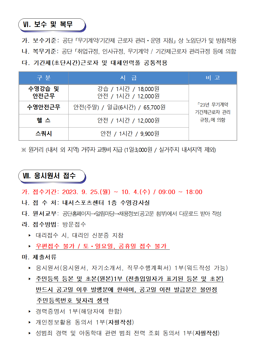 [내서스포츠센터] 기간제(초단시간) 및 대체인력풀 채용공고 상세보기
