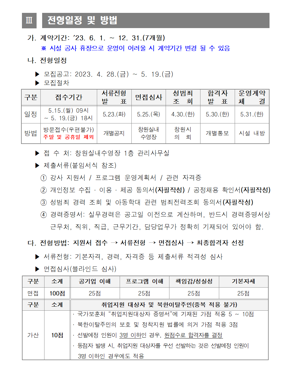 [창원실내수영장] 기간제근로자 재모집 공고
