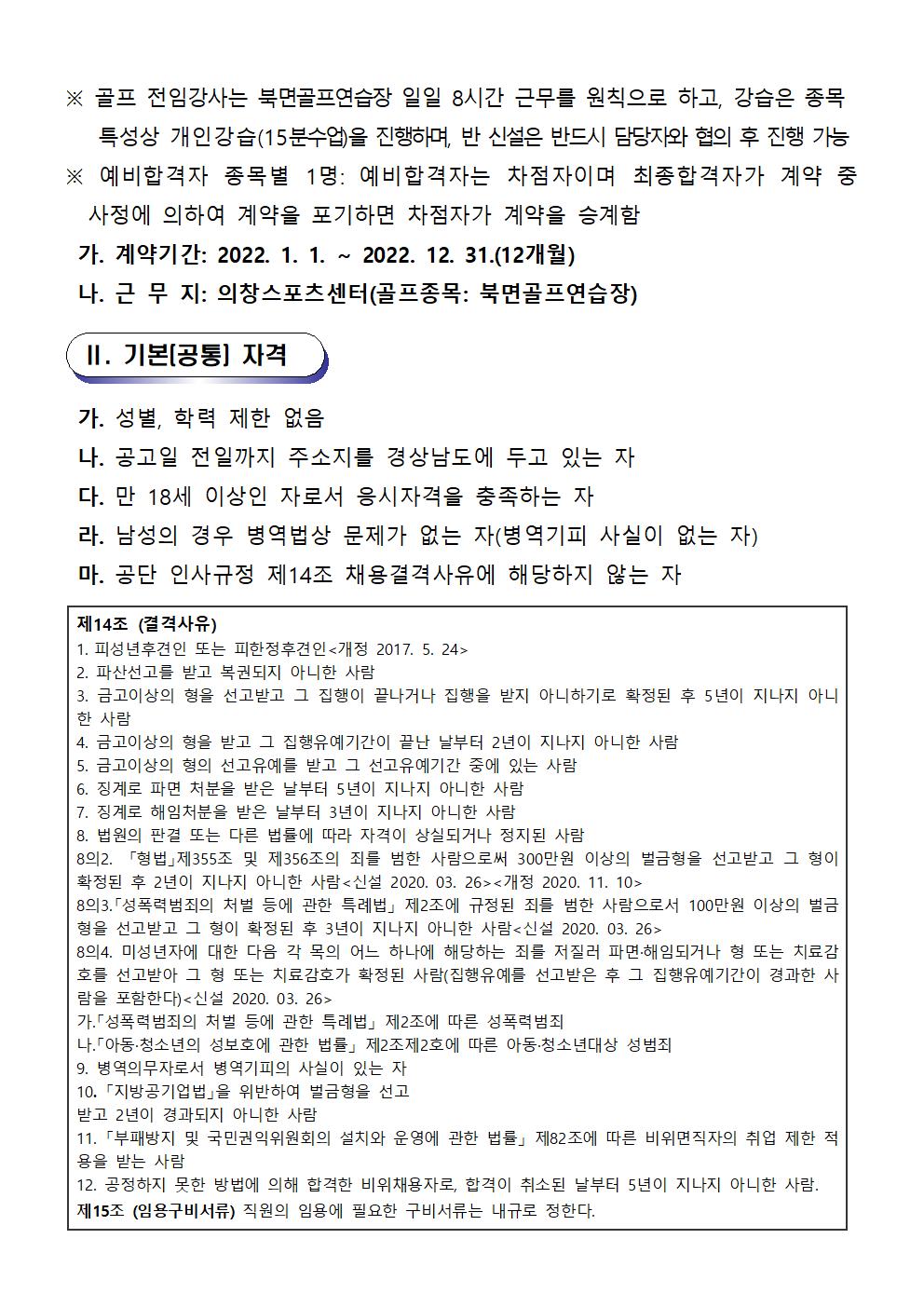 [의창스포츠센터] 2022년 기간제(초단시간) 및 대체인력풀 근로자 모집 공고
