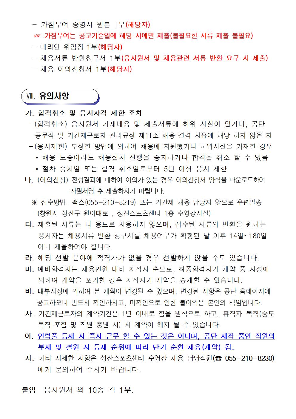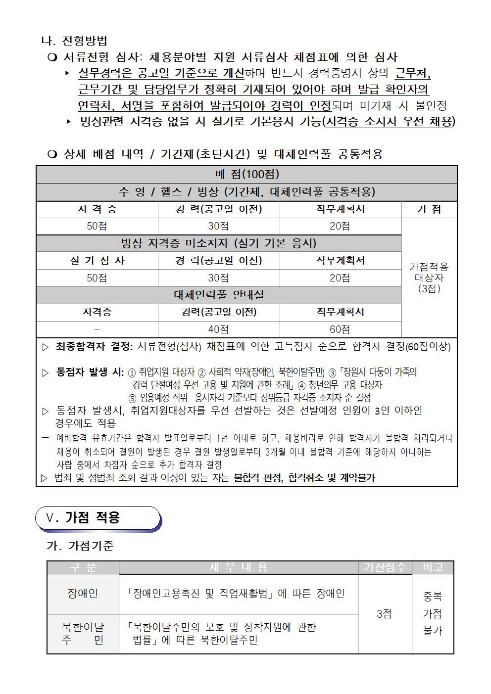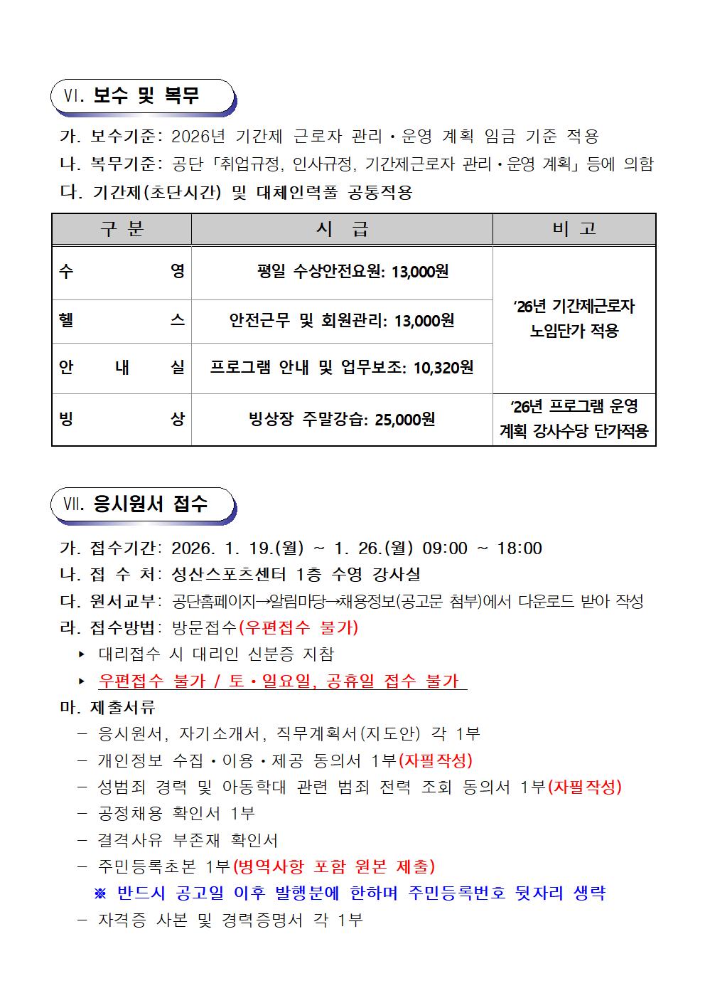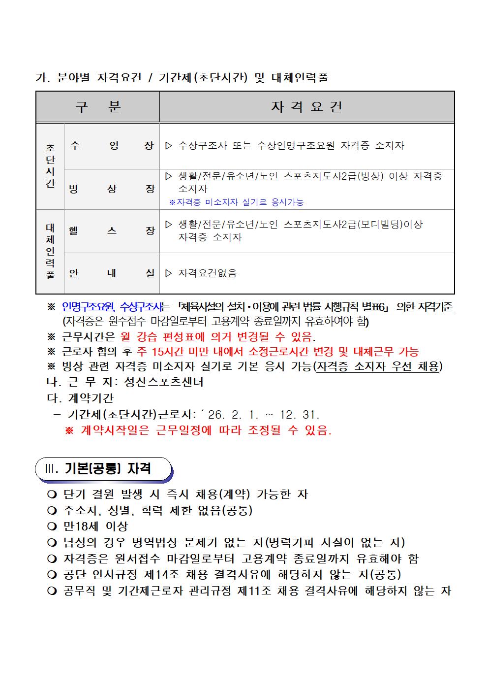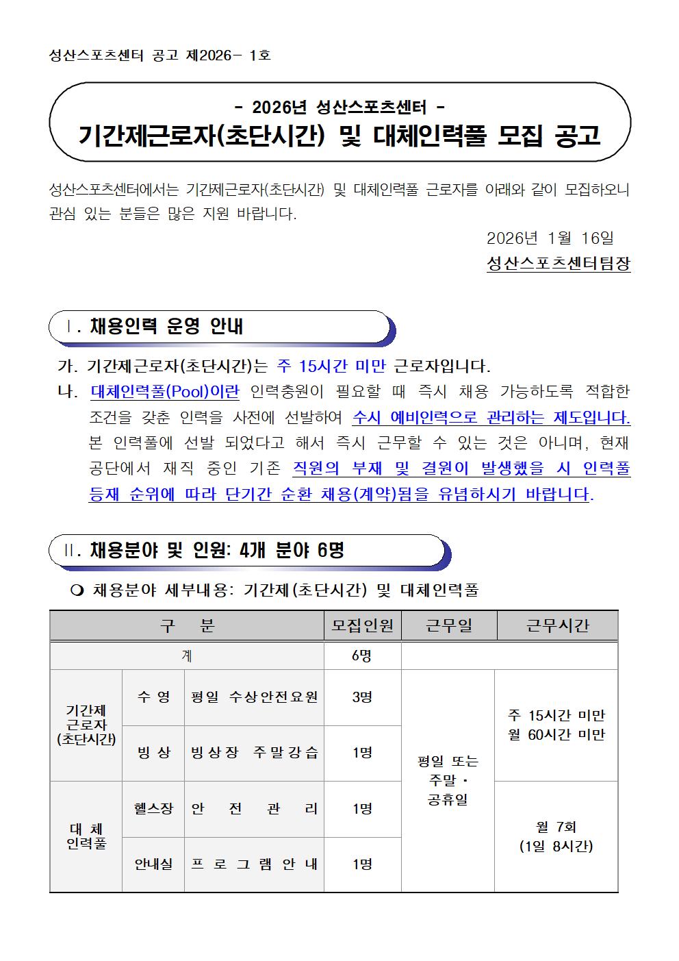 성산스포츠센터 기간제근로자(초단시간) 및 대체인력풀 채용공고
