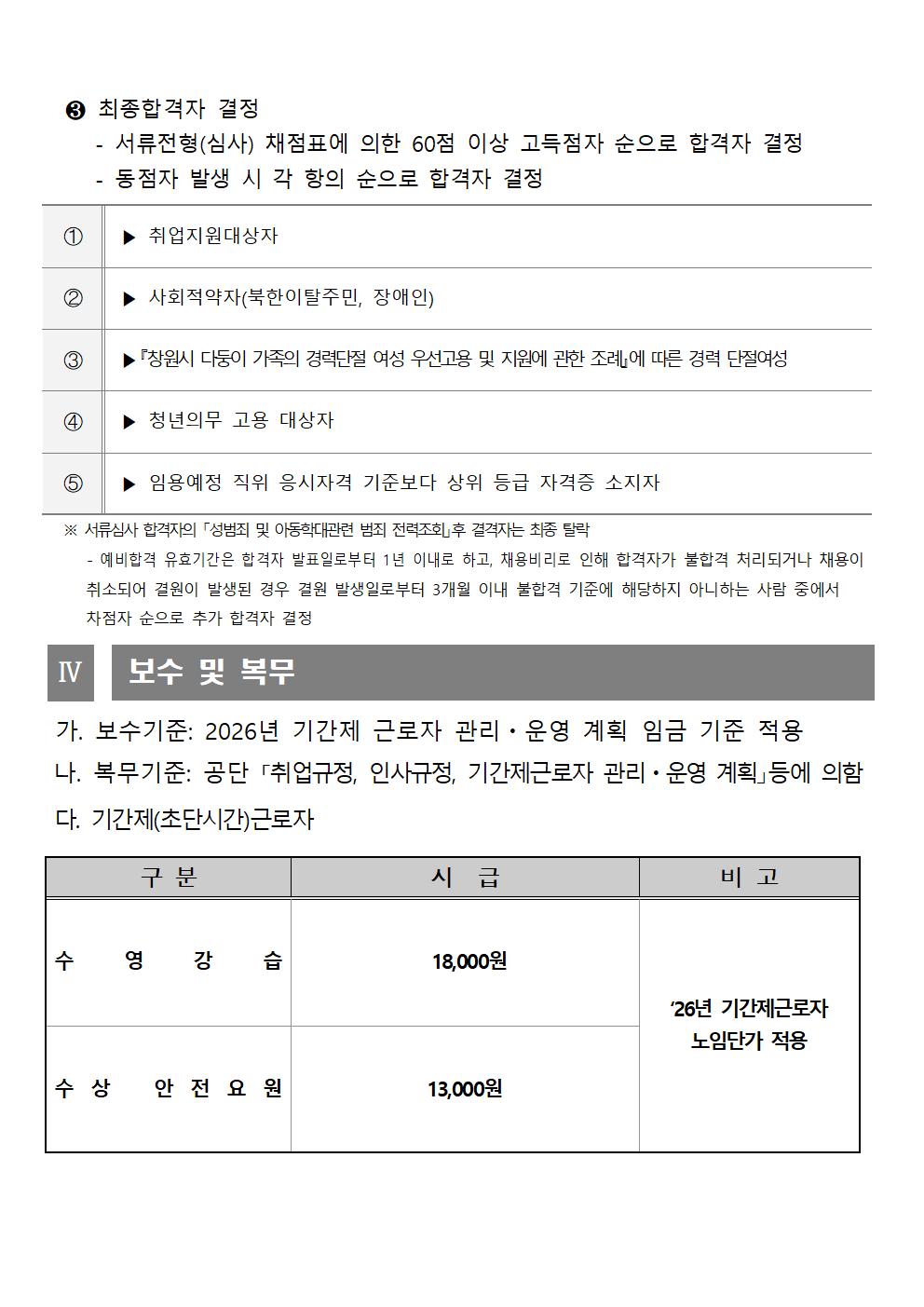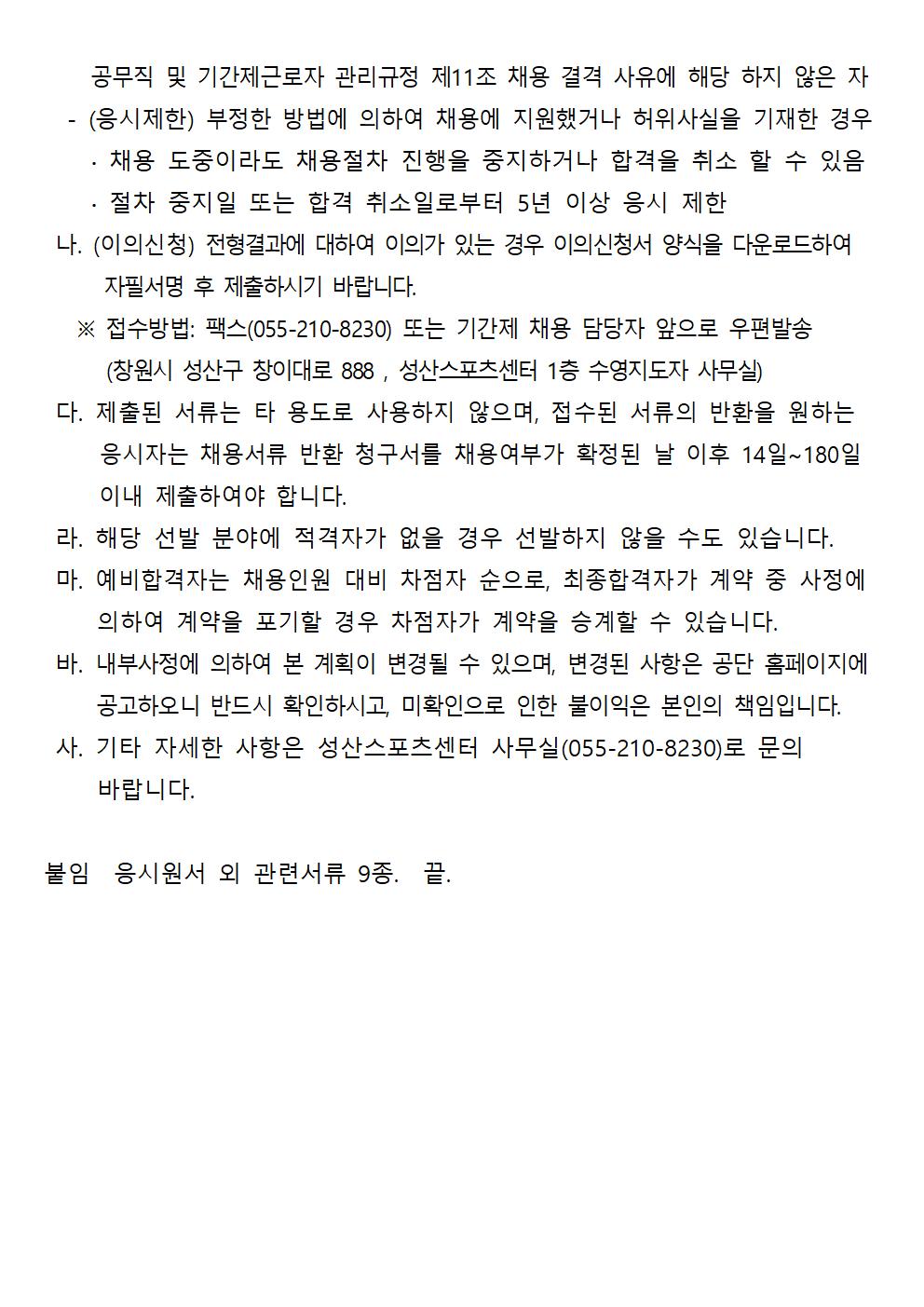 창원축구센터 기간제(초단시간) 근로자 최종 합격자 공고