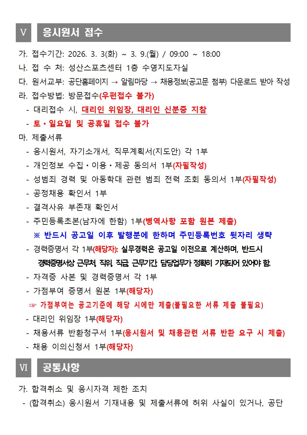 (성산스포츠센터) 기간제근로자 경력경쟁채용 공고