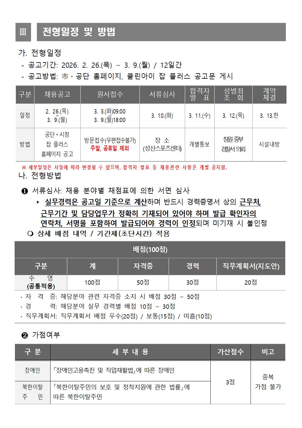 (성산스포츠센터)기간제근로자 경력 경쟁 채용 공고